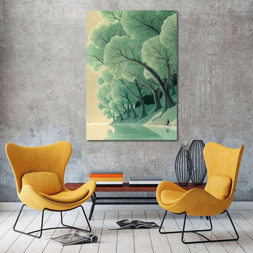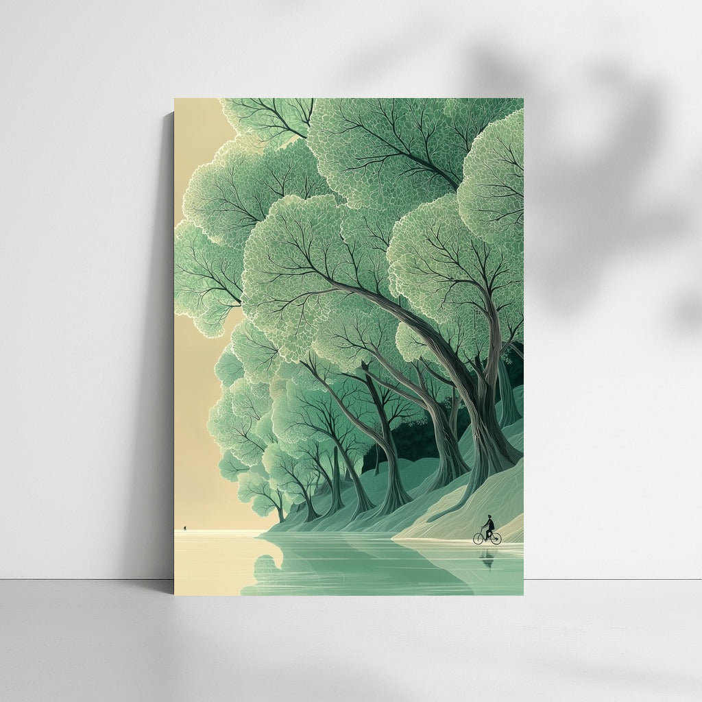 Mesmerizing poster of a girl on a bicycle in a fairytale forest. Beautiful wall art for inspiration and coziness. See more from the collection: Mixed Wall Art
