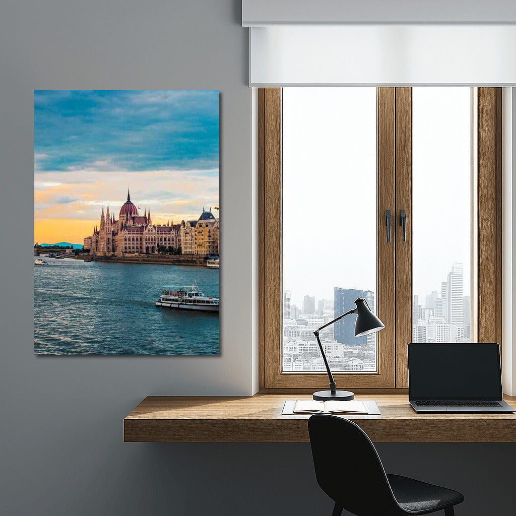 A magical evening on the Danube: the poster conveys the grandeur of Hungarian architecture and the atmosphere of Budapest. Ideal wall art. See more from the collection: Country Art