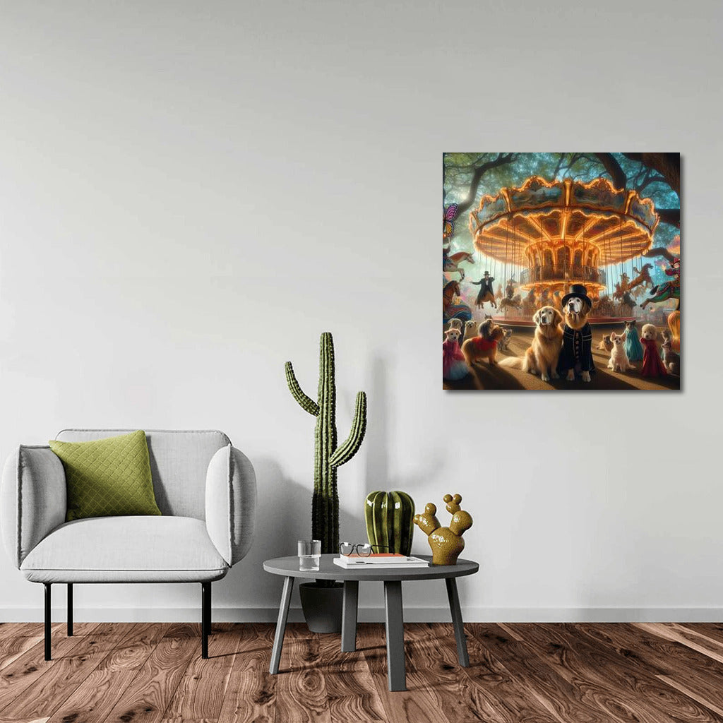 Magical Carousel with Dressed Dogs in Wonderland Wall Art