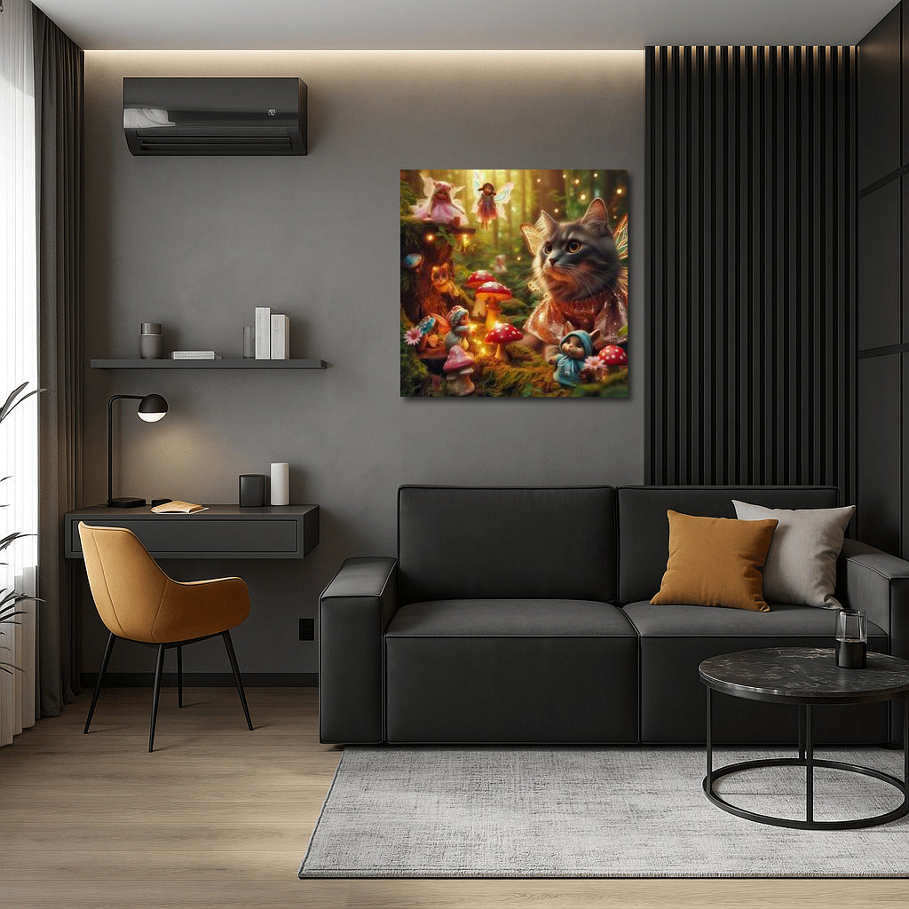 Magical Cat in the Fairytale Forest: Magical Creatures and Mushrooms Wall Art
