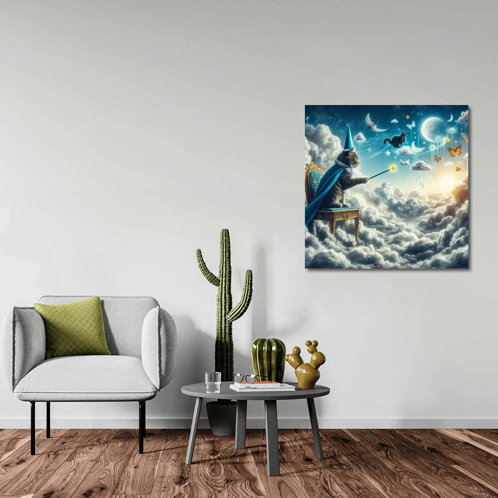 Magical Cat on the Cloud Throne: Weather Control Wall Art