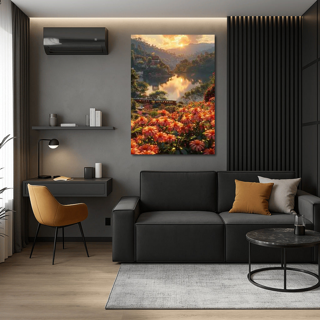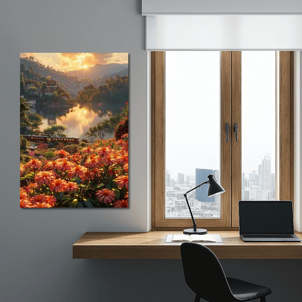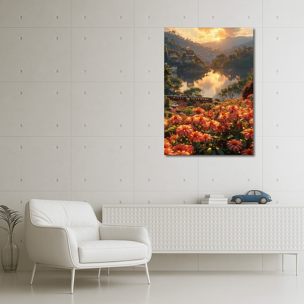 Immerse yourself in the magical sunset over an Indian lake. This poster fills your home with peace and colors of nature. See more from the collection: Country Art