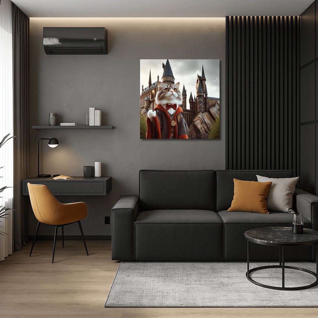 Magical Wizard Cat at Hogwarts Walls: Harry Potter Style Wall Art