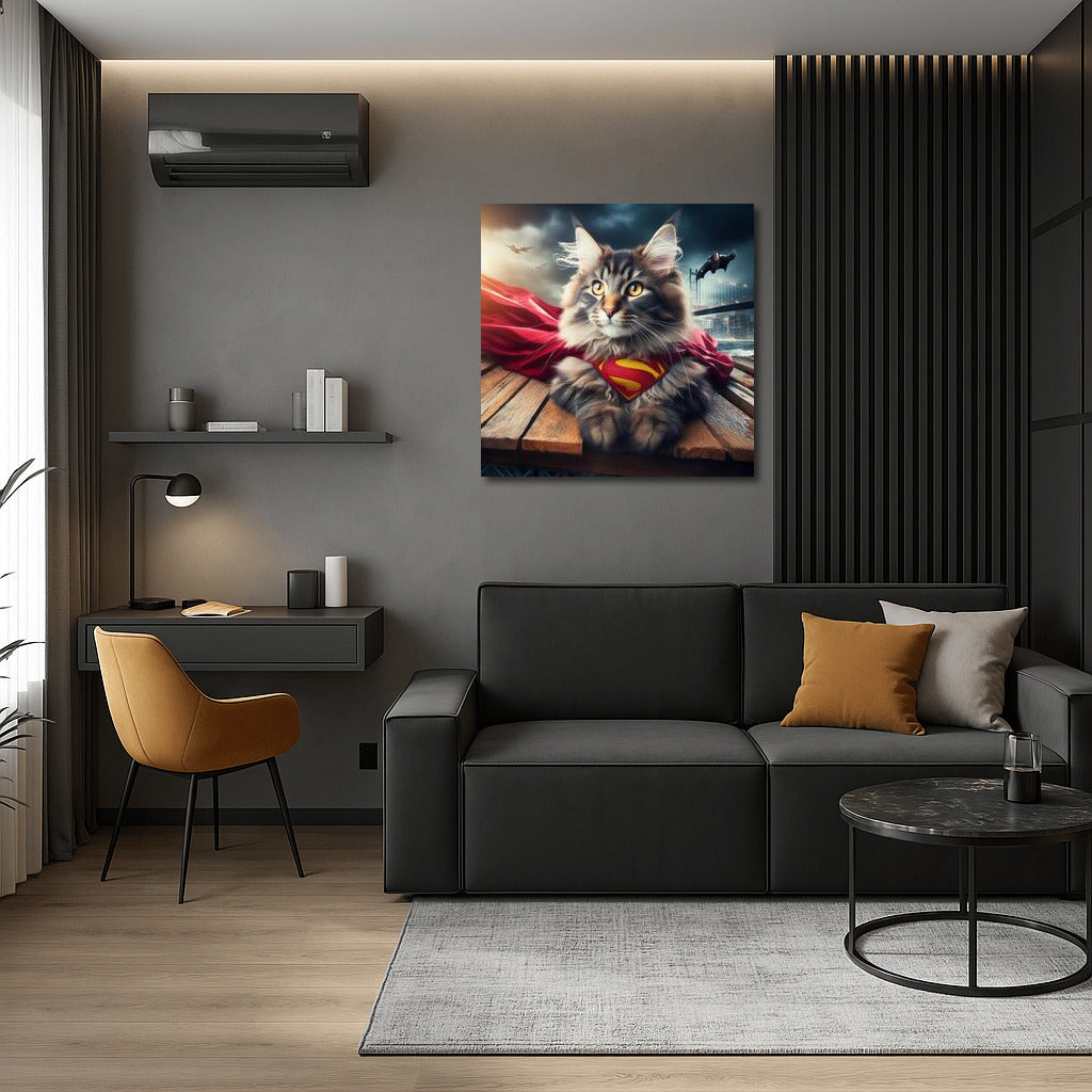 Maine Coon Caped Crusader: Soft Power Wall Art