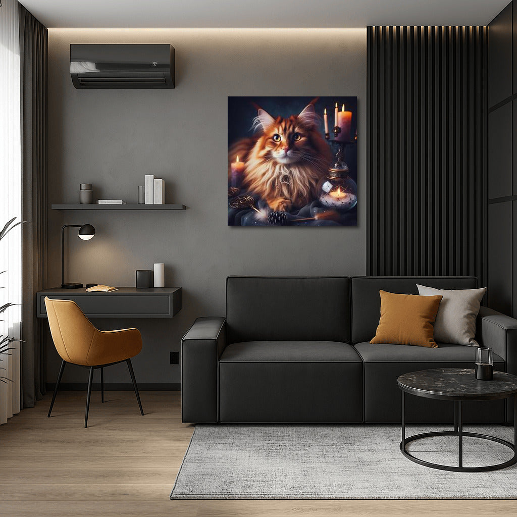 Wall Art Magic: Maine Coon's Enchanting Gaze Among Candles and Mysteries. A Perfect Poster for Mystery Lovers! See more from the collection: Animals Art