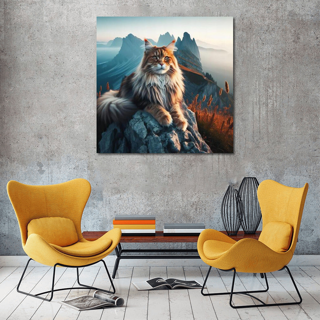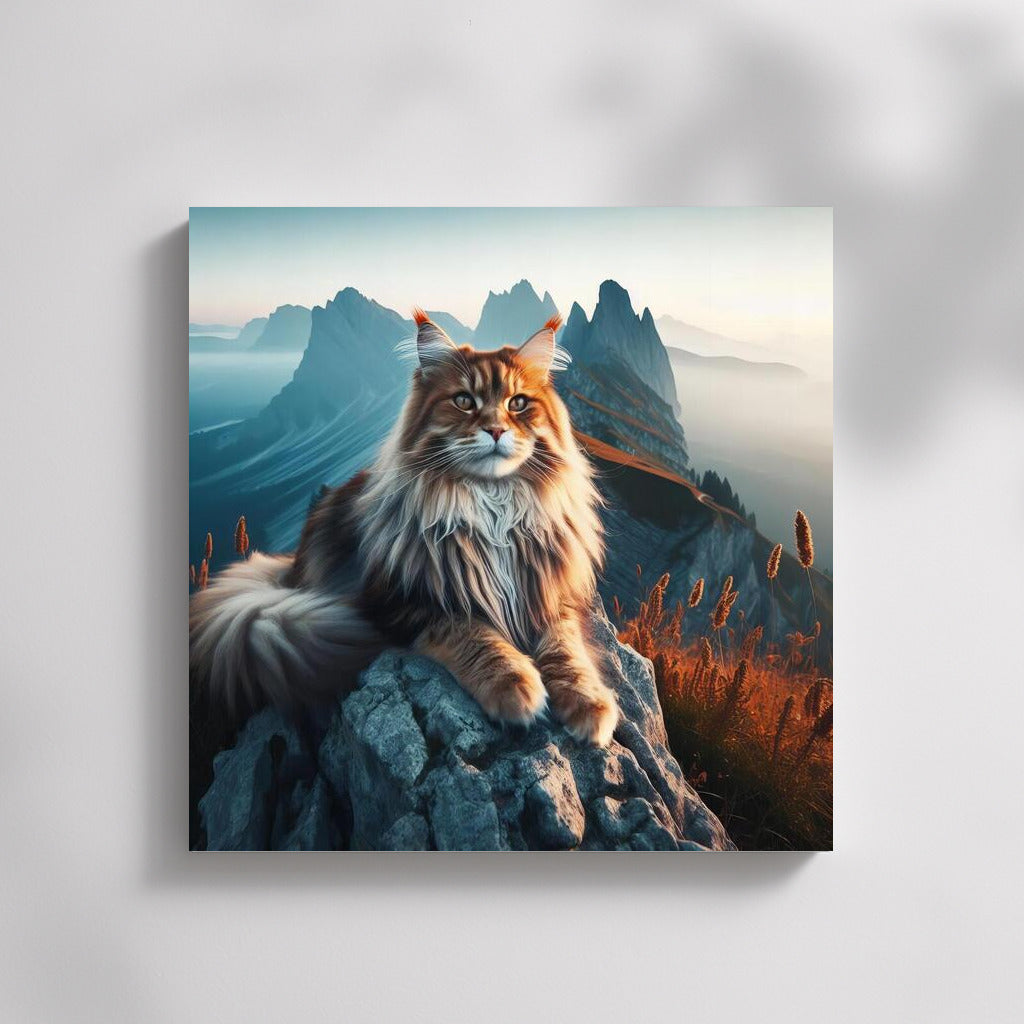 Maine Coon on the Top of the Mountain - Wall Art for Inspiration and Peace. Make your interior more paintingsque! See more from the collection: Animals Art