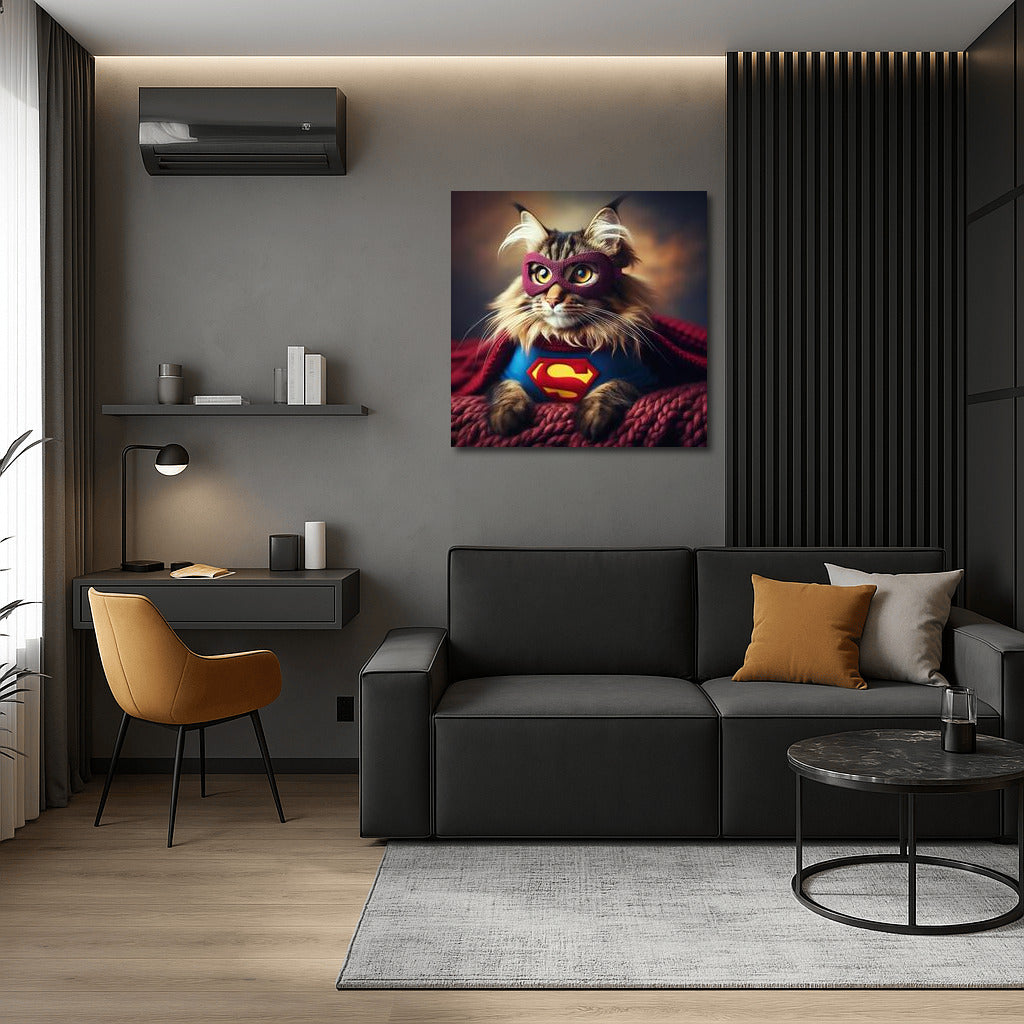 Superhero Maine Coon: Wall art where the cat saves the world! The perfect poster for hero fans and cat lovers. See more from the collection: Animals Art