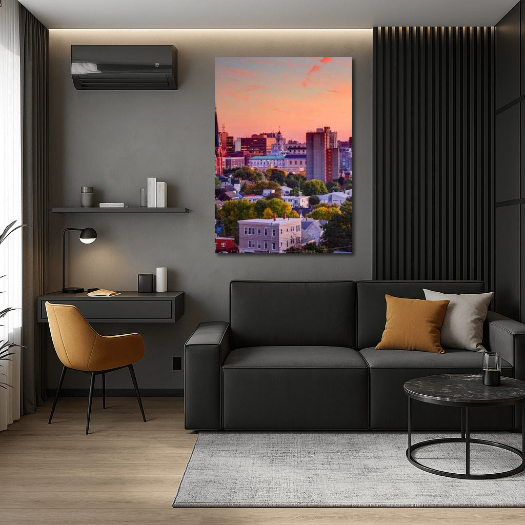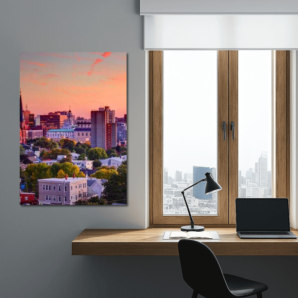 Maine's Sunset Charm: An Urban Symphony of Colors Wall Art