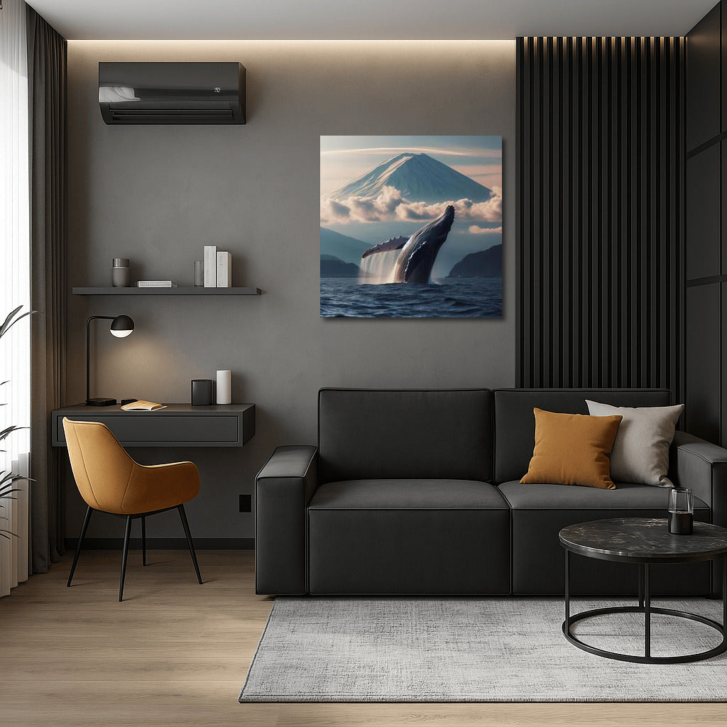 Majestic Whale at Mount Fuji: Japanese Harmony Wall Art