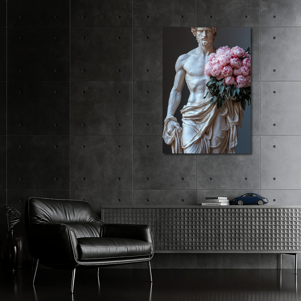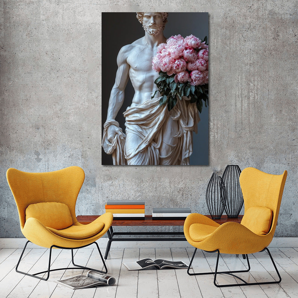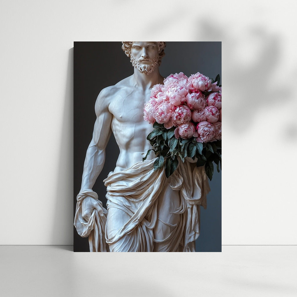 Sculptural masterpiece. Poster with marble sculpture holding peonies. Perfect wall art for your interior. See more from the collection: Mixed Wall Art