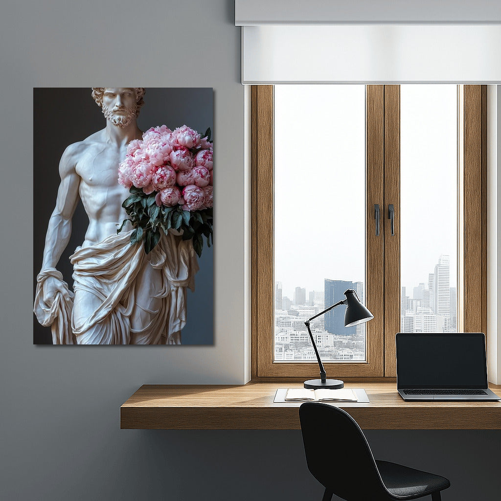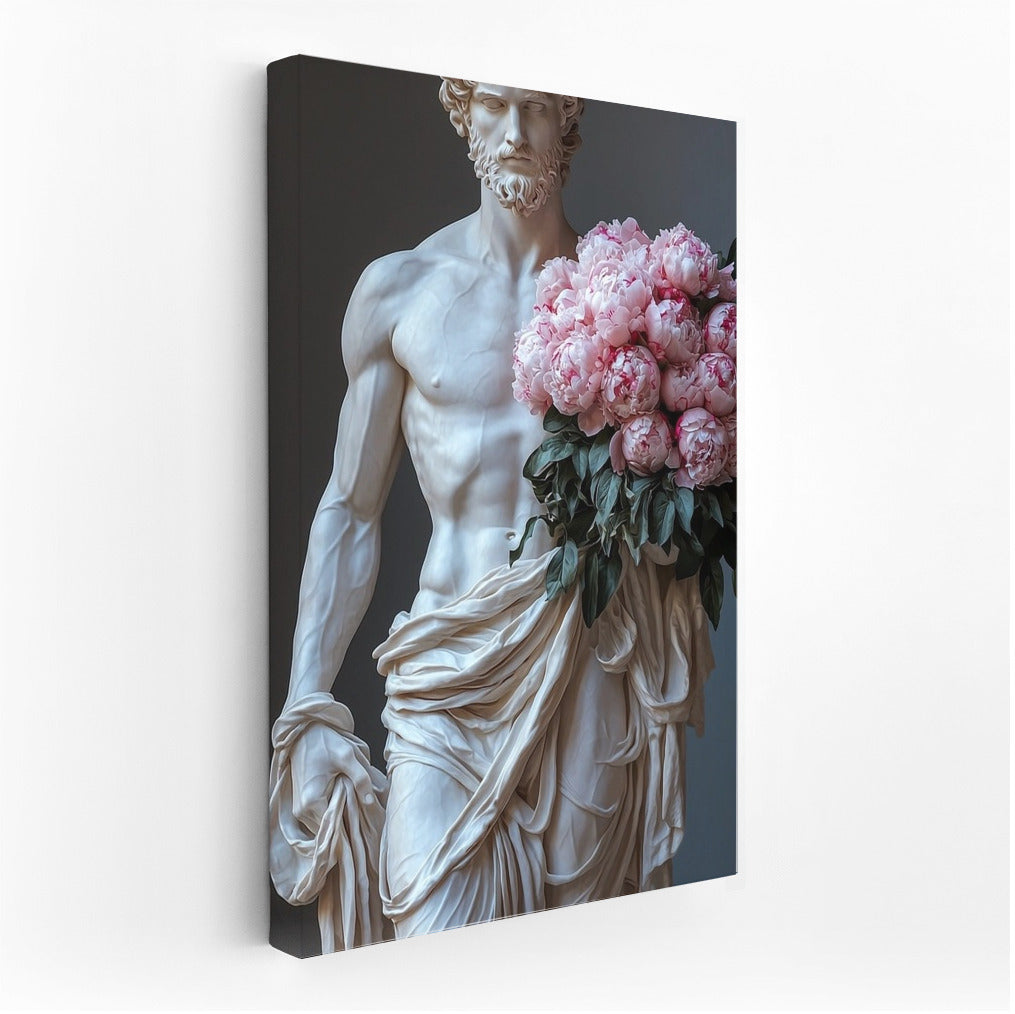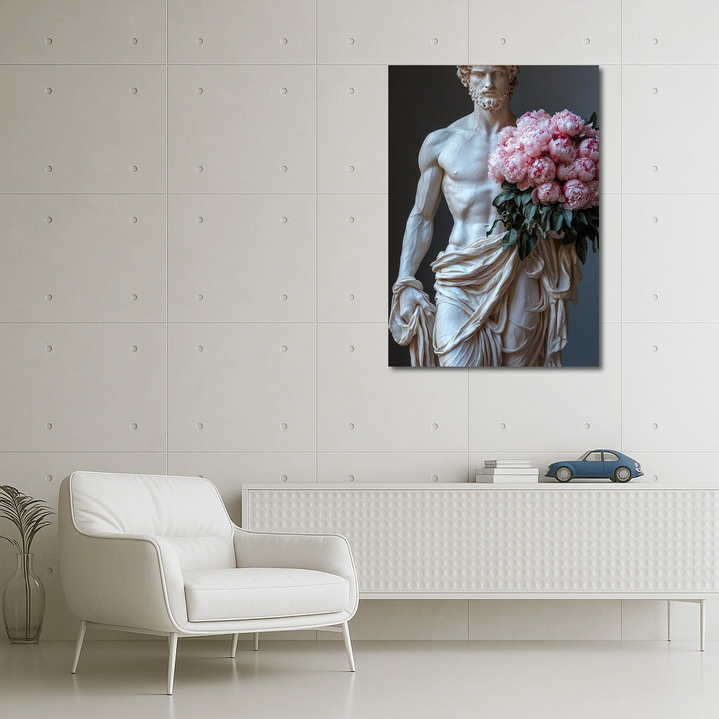 Sculptural masterpiece. Poster with marble sculpture holding peonies. Perfect wall art for your interior. See more from the collection: Mixed Wall Art
