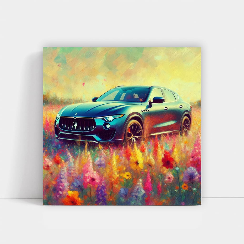 Hey bro, imagine this: a poster that screams speed and style - this is the Maserati Levante in impressionist style. Wall art for true car lovers. It's like adrenaline on canvas. A painting that makes the hearts of car fans beat faster. See more from the collection: Maserati Art