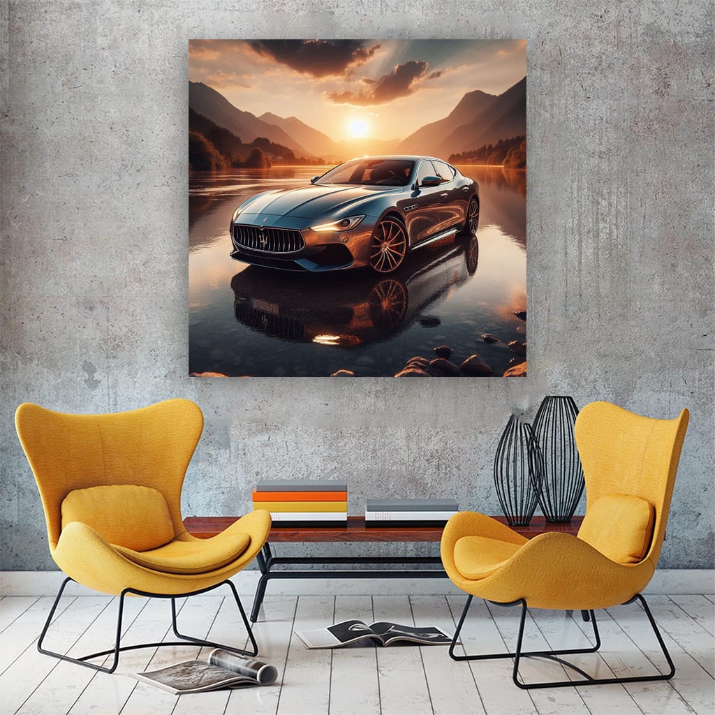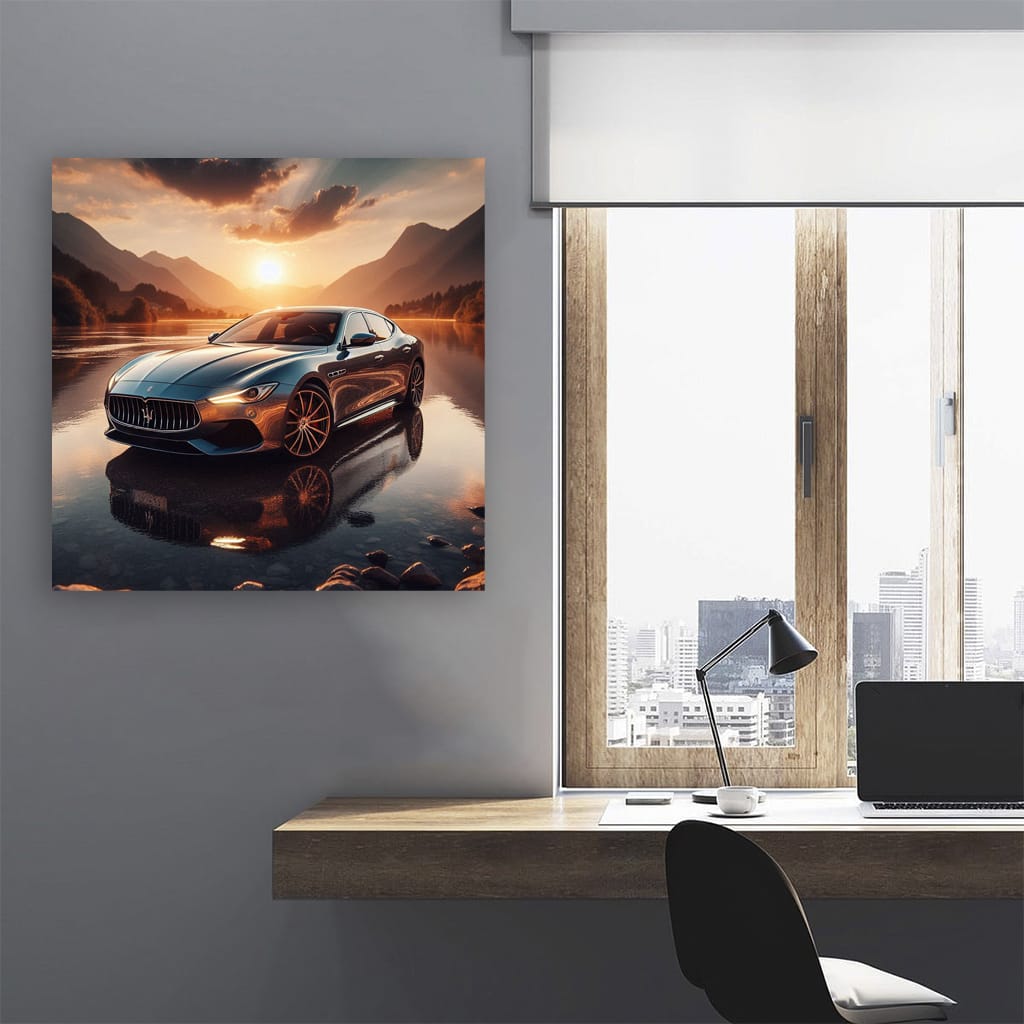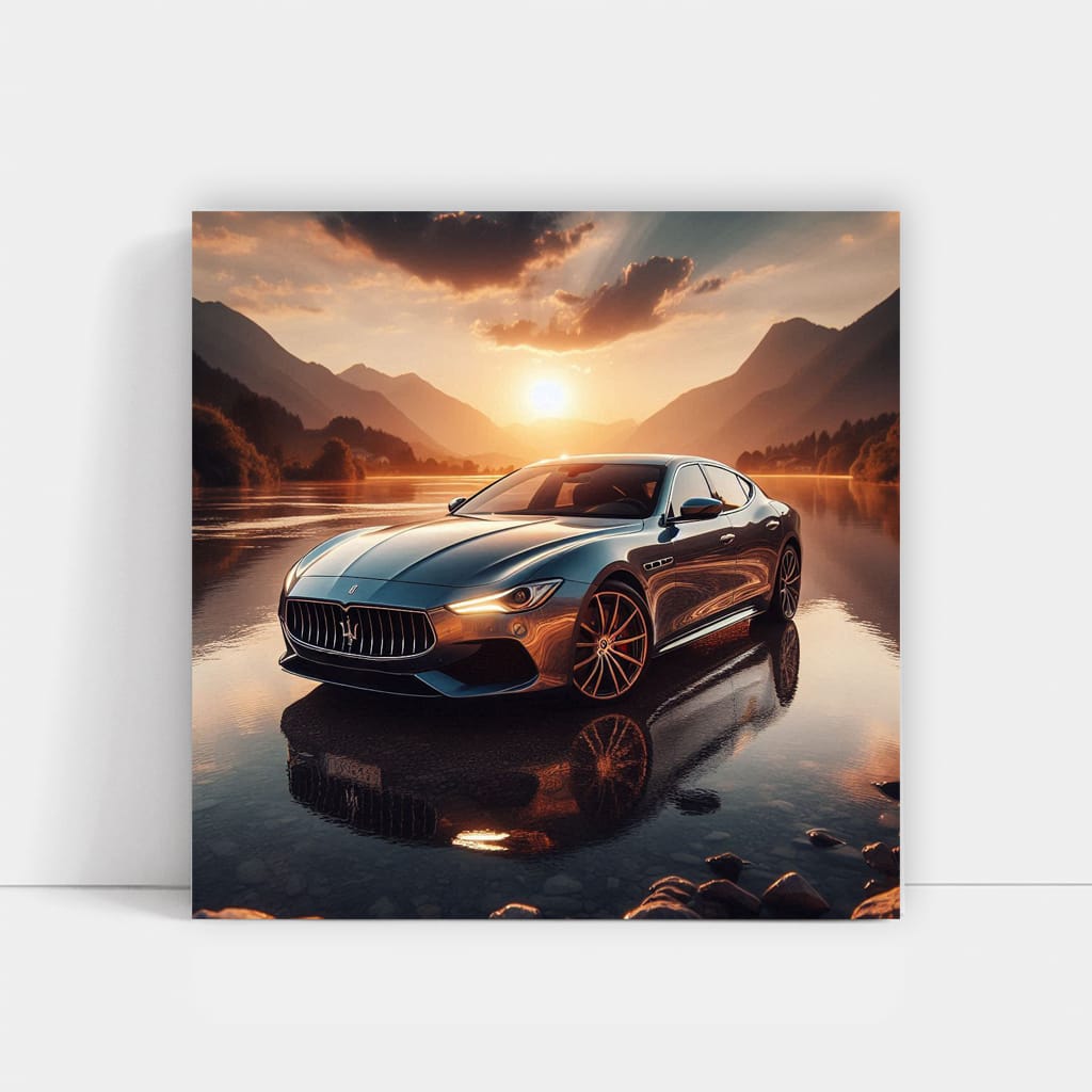 Dude, this is a poster – Maserati Quattroporte with a river in the background! Wall art for real car lovers. This masterpiece just screams about speed and style. Hang it on the wall and you will immediately feel the drive in every cell. This is a painting for those who appreciate speed and power. See more from the collection: Maserati Art
