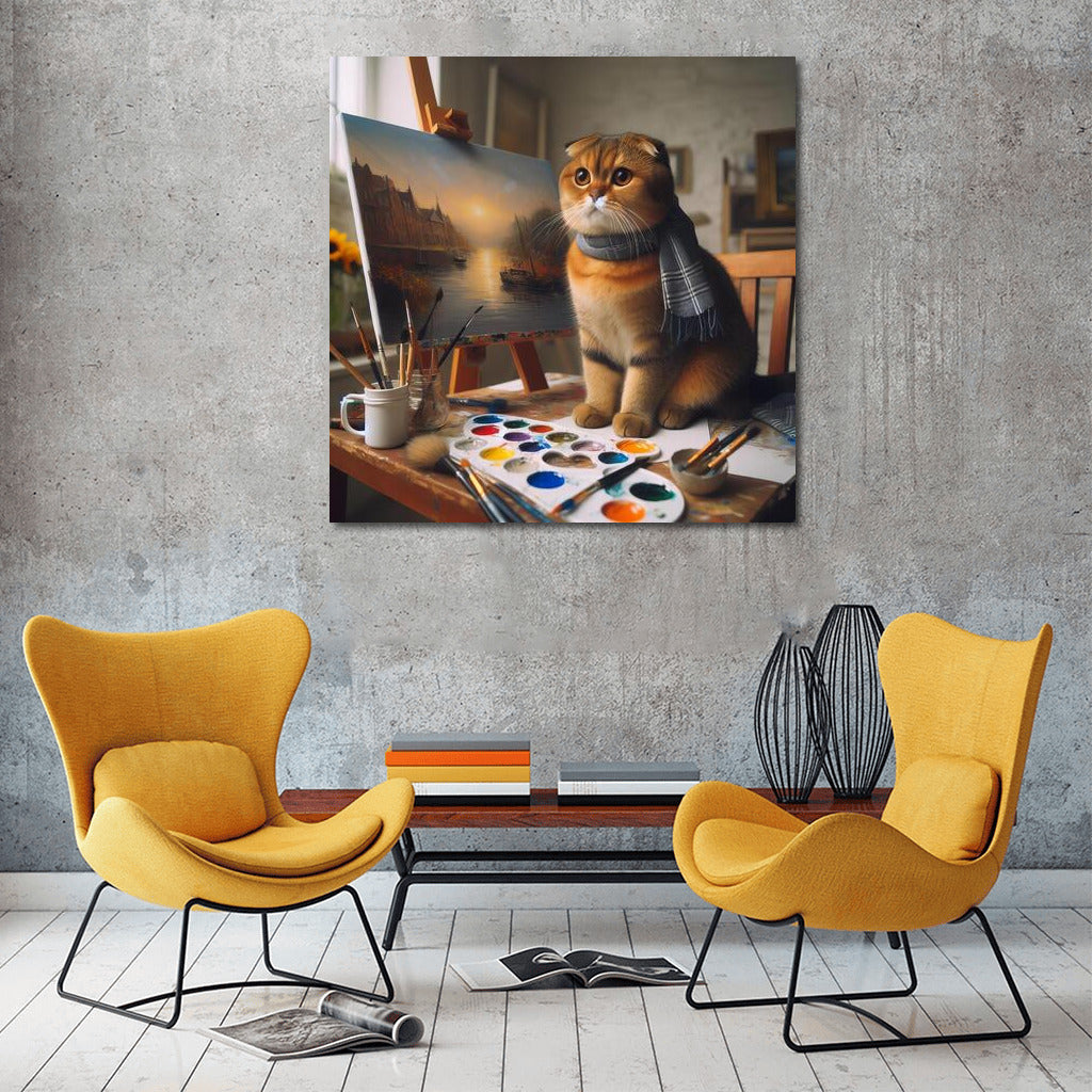 Masterpiece in Paws: Scottish Fold in the Workshop Wall Art