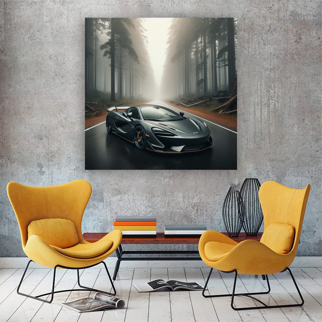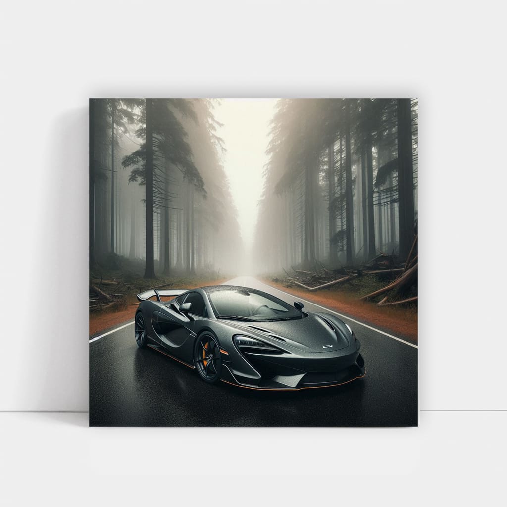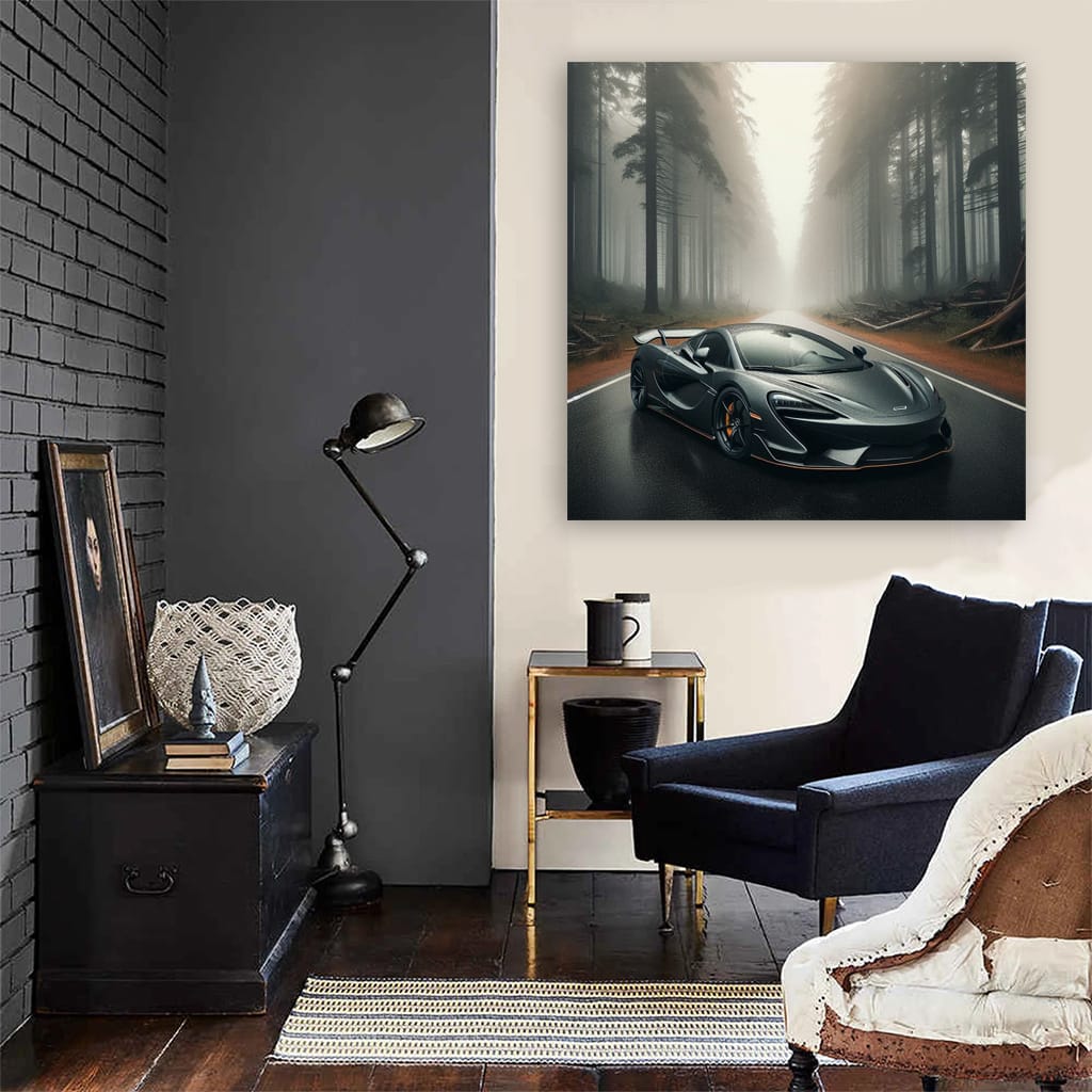 Hey bro, check out this McLaren Elva poster with a dark sky in the background. Wall art that will give you goosebumps. The painting just screams speed and power, perfect for a garage or man cave. The boys will appreciate it! See more from the collection: McLaren Art