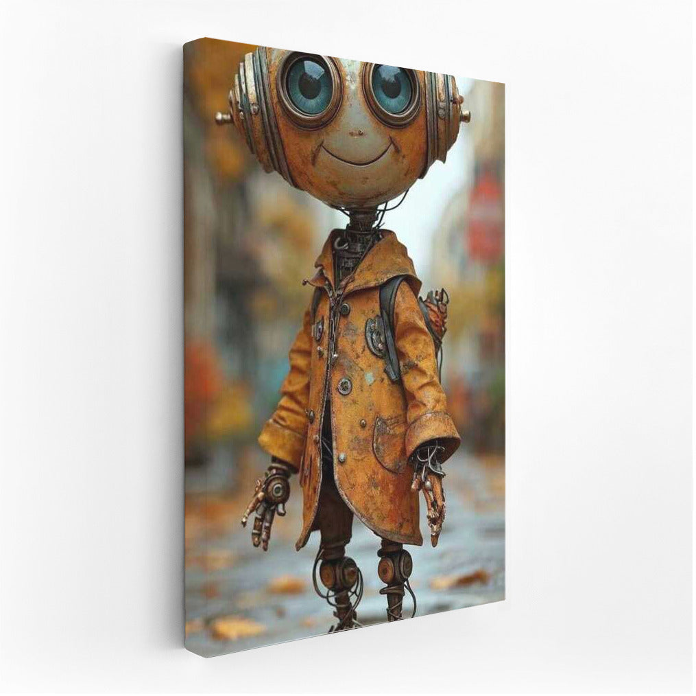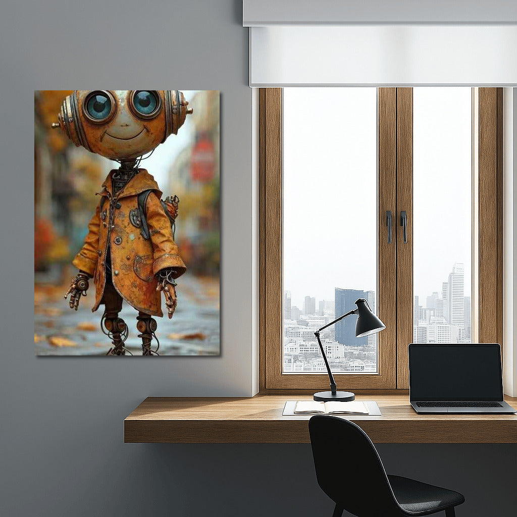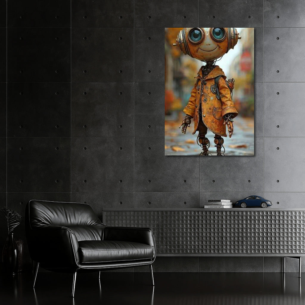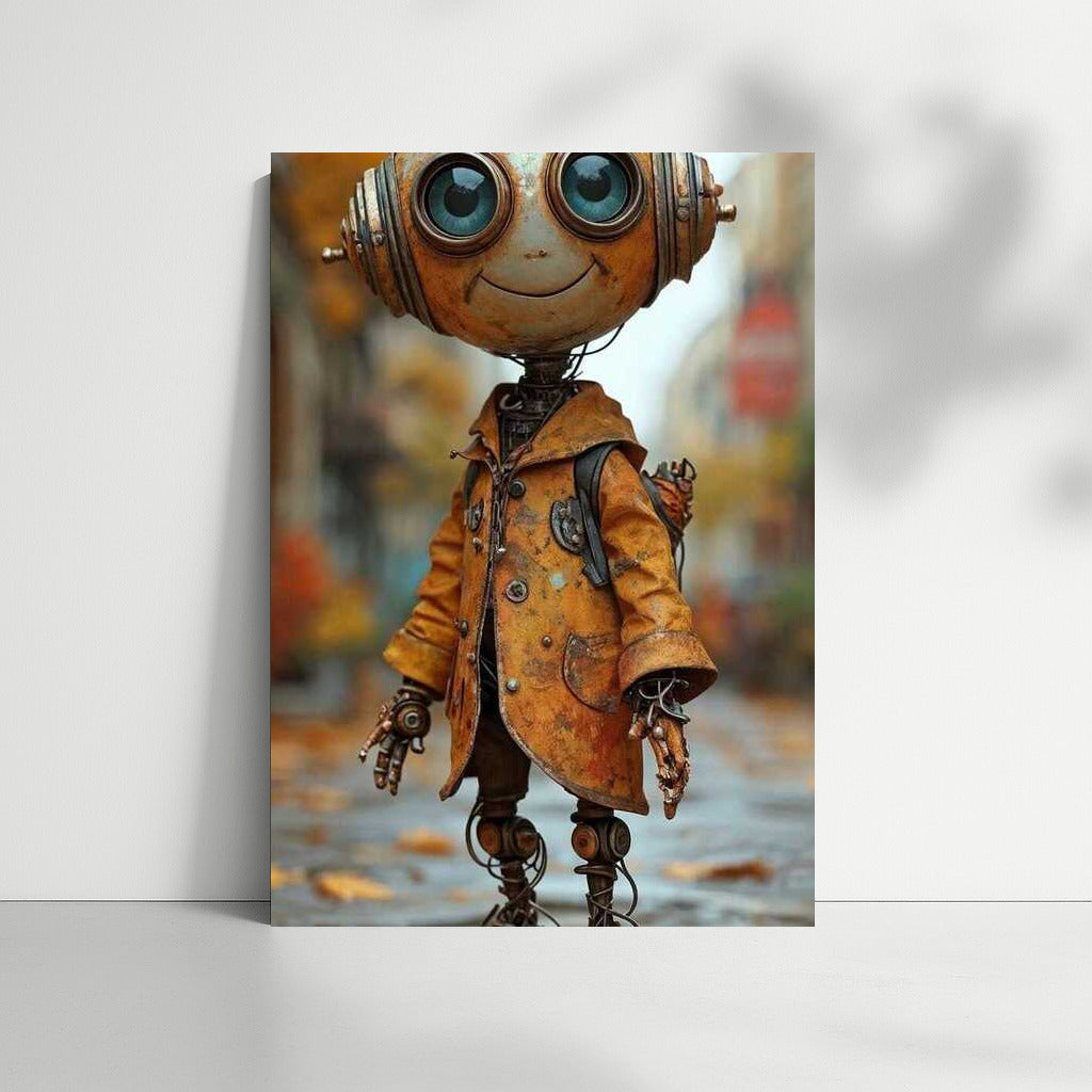 This poster brings the world of Steampunk to life: a cute mechanical character in a retro coat will add charm to your wall art. See more from the collection: Steampunk Art