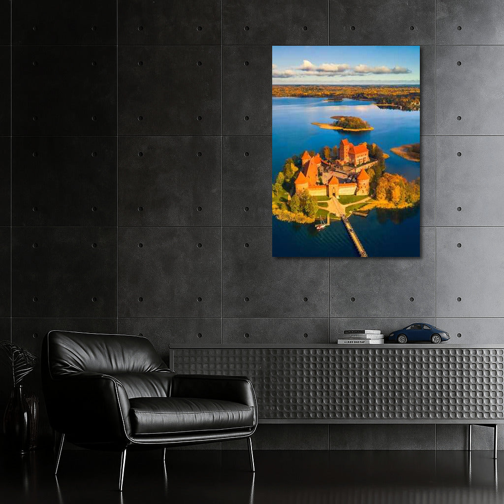 Autumn in Estonia comes alive on a poster where a medieval castle is reflected in the mirror-like surface of a lake, creating a magical atmosphere. See more from the collection: Country Art
