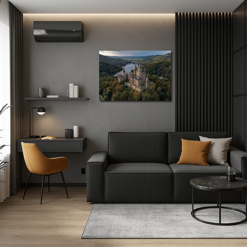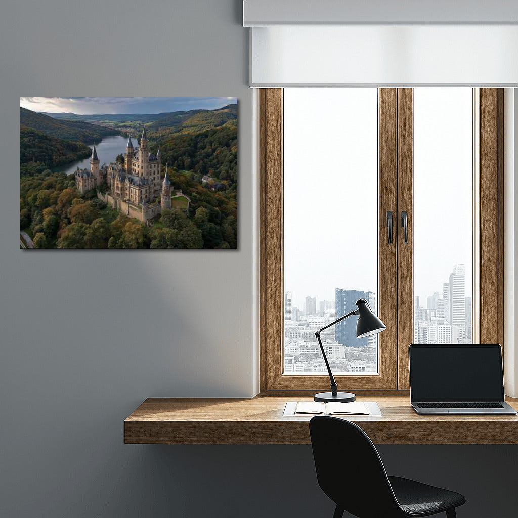 The charm of medieval Germany: a poster with a majestic castle among emerald hills will become a bright accent of your interior. See more from the collection: Country Art