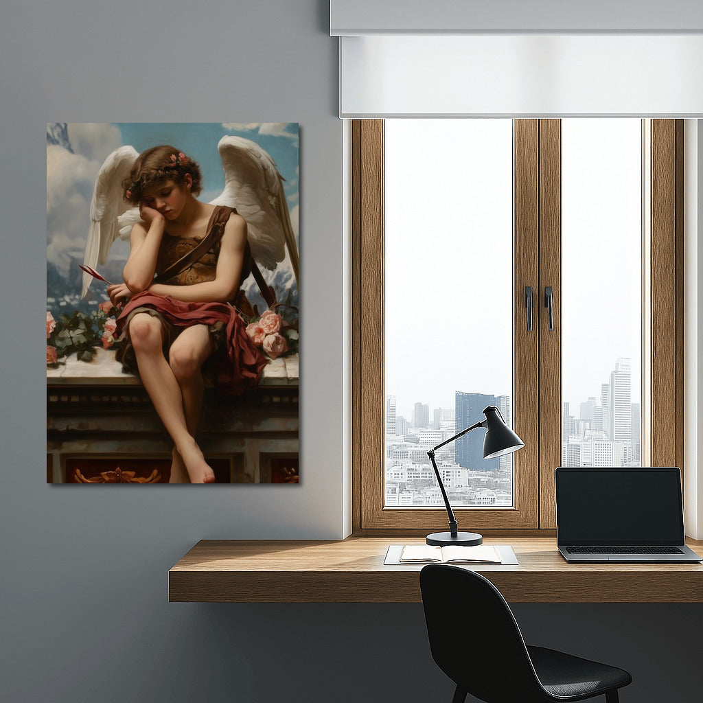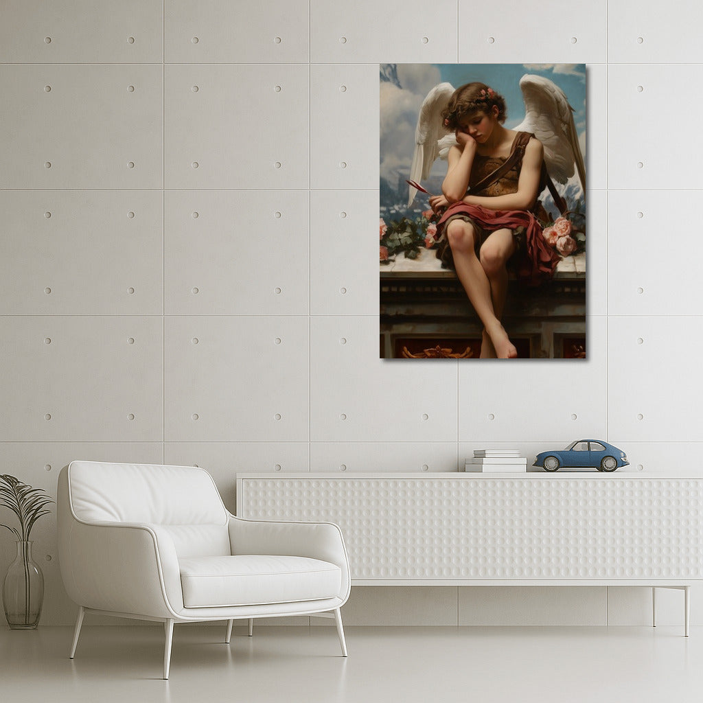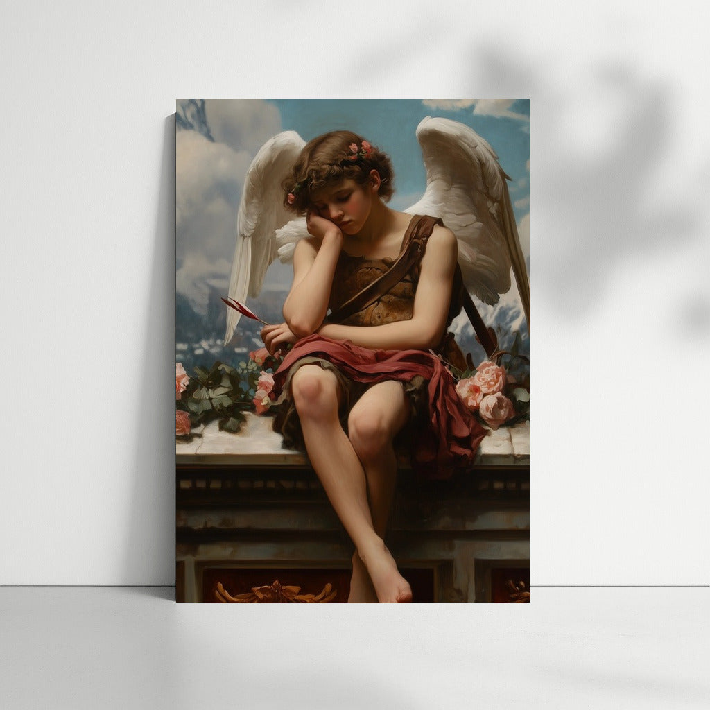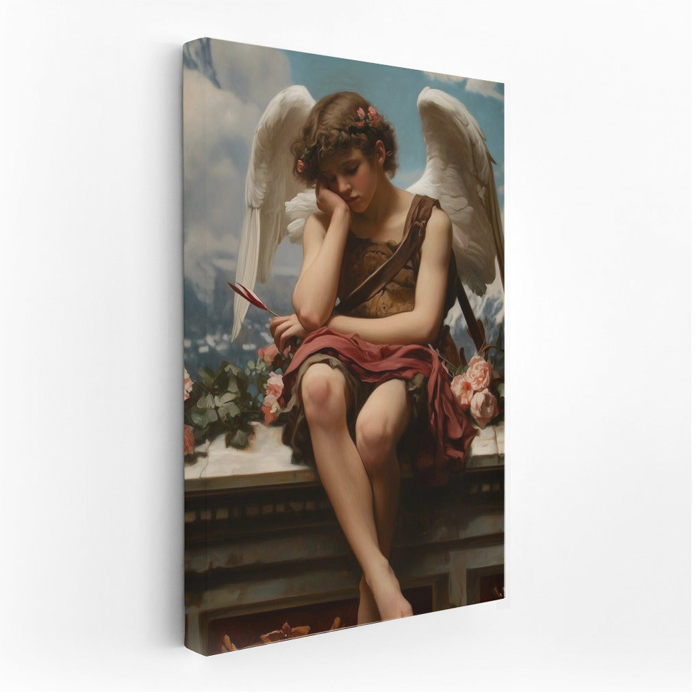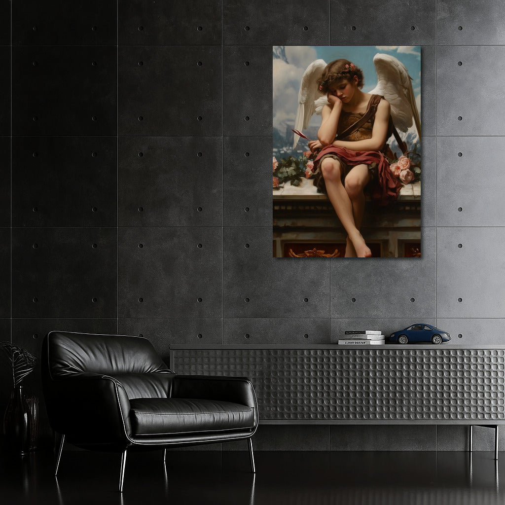 Elegant wall art featuring a pensive angel among the clouds. Add inspiration to your space with this art painting. See more from the collection: Mixed Wall Art