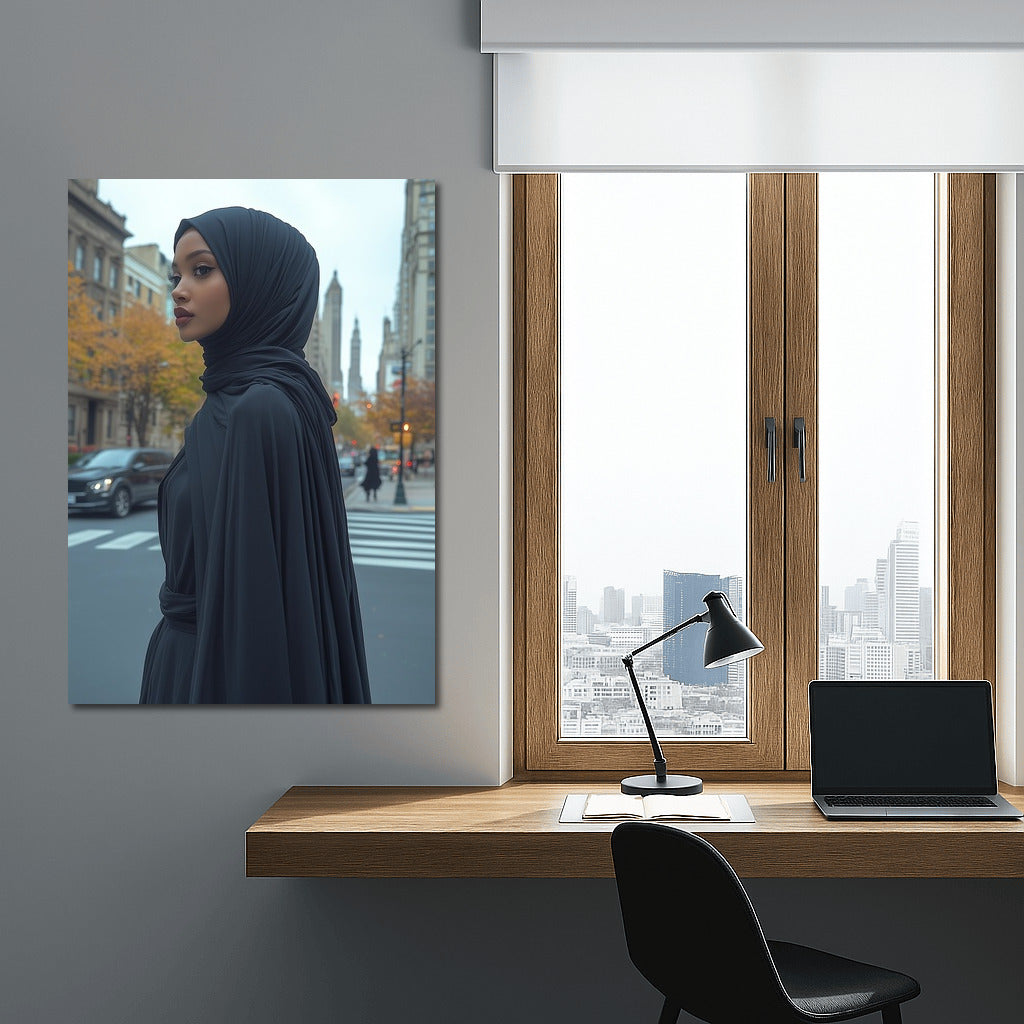 Urban Magic: A sophisticated girl in the center of the metropolis. A modern painting that will bring style and depth to your wall art. See more from the collection: Wall Art with Women