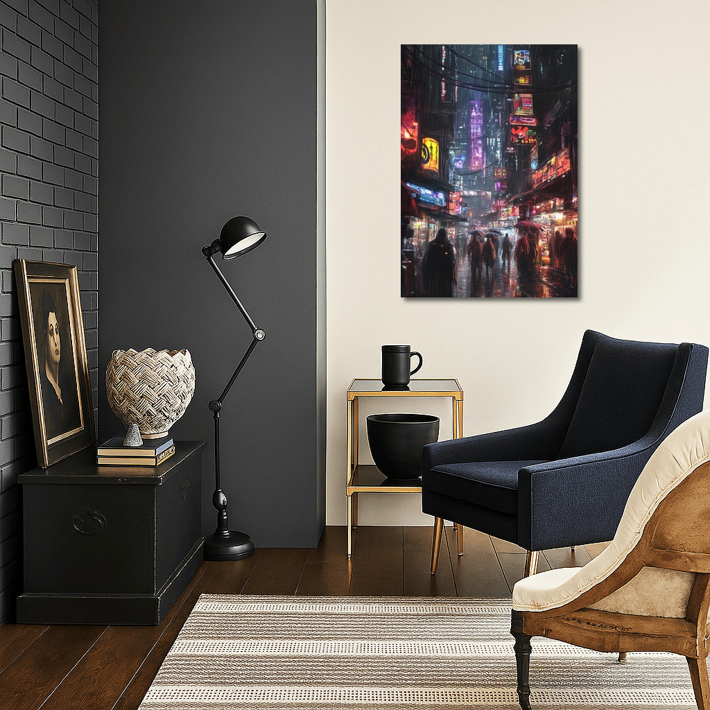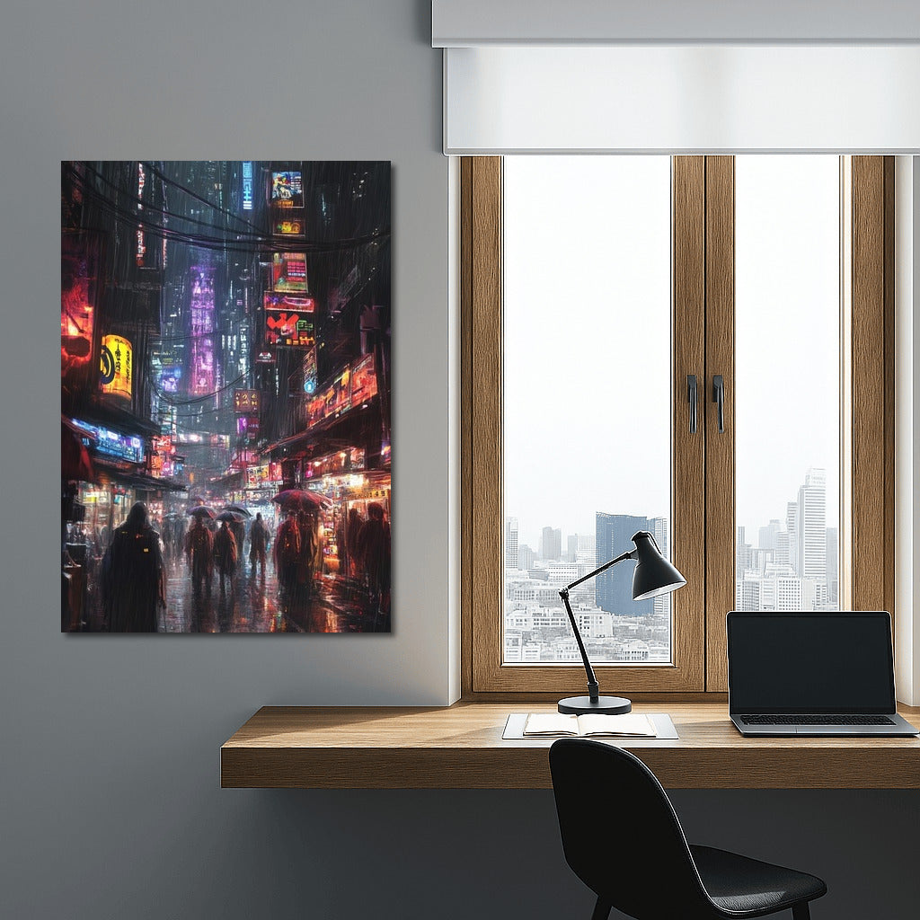 The neon symphony of the night city brings the walls to life, turning the poster into a portal to a distant, rainy metropolis. See more from the collection: City at Night Art