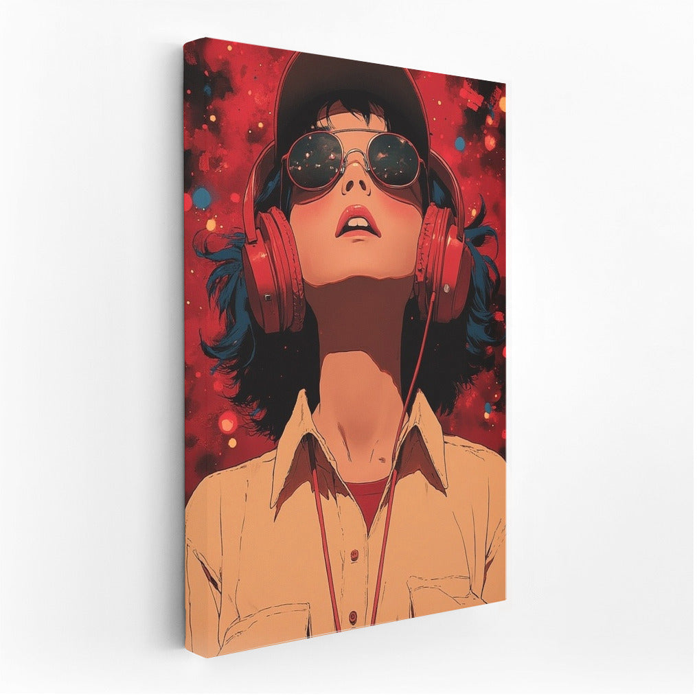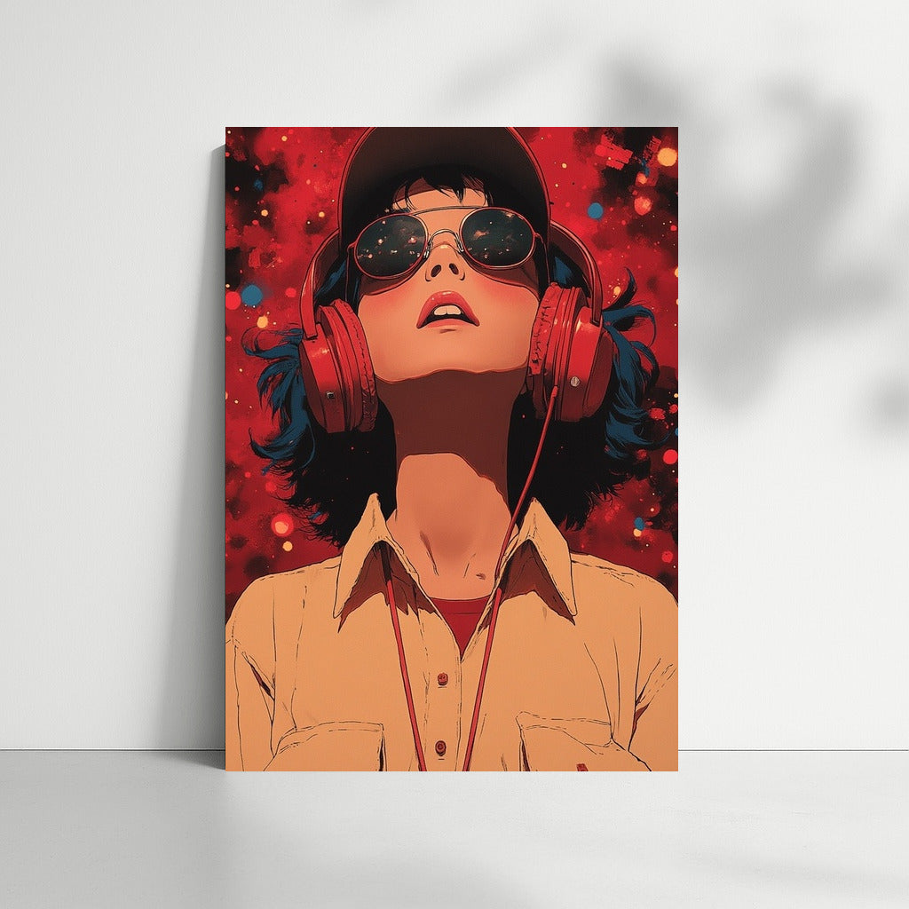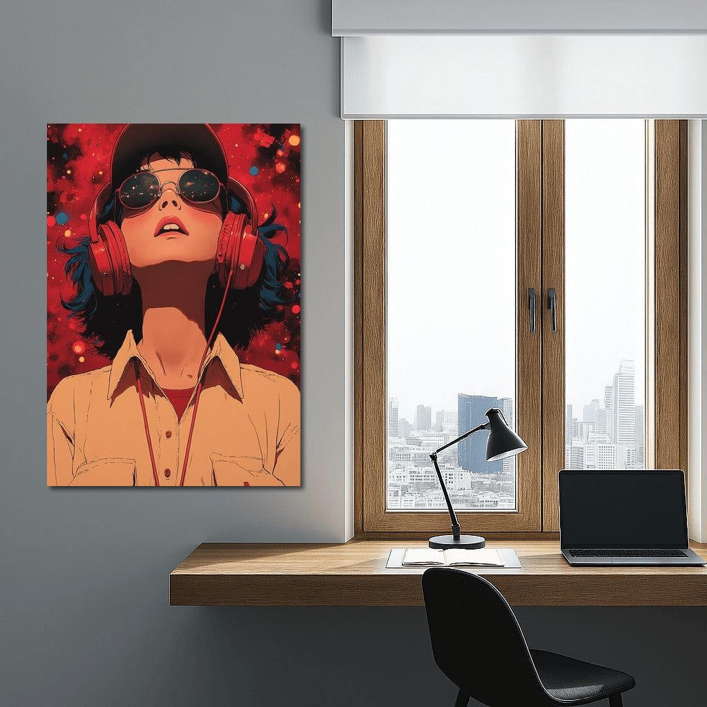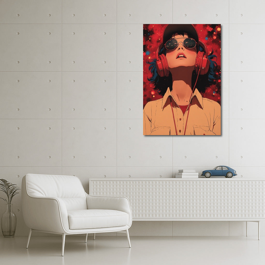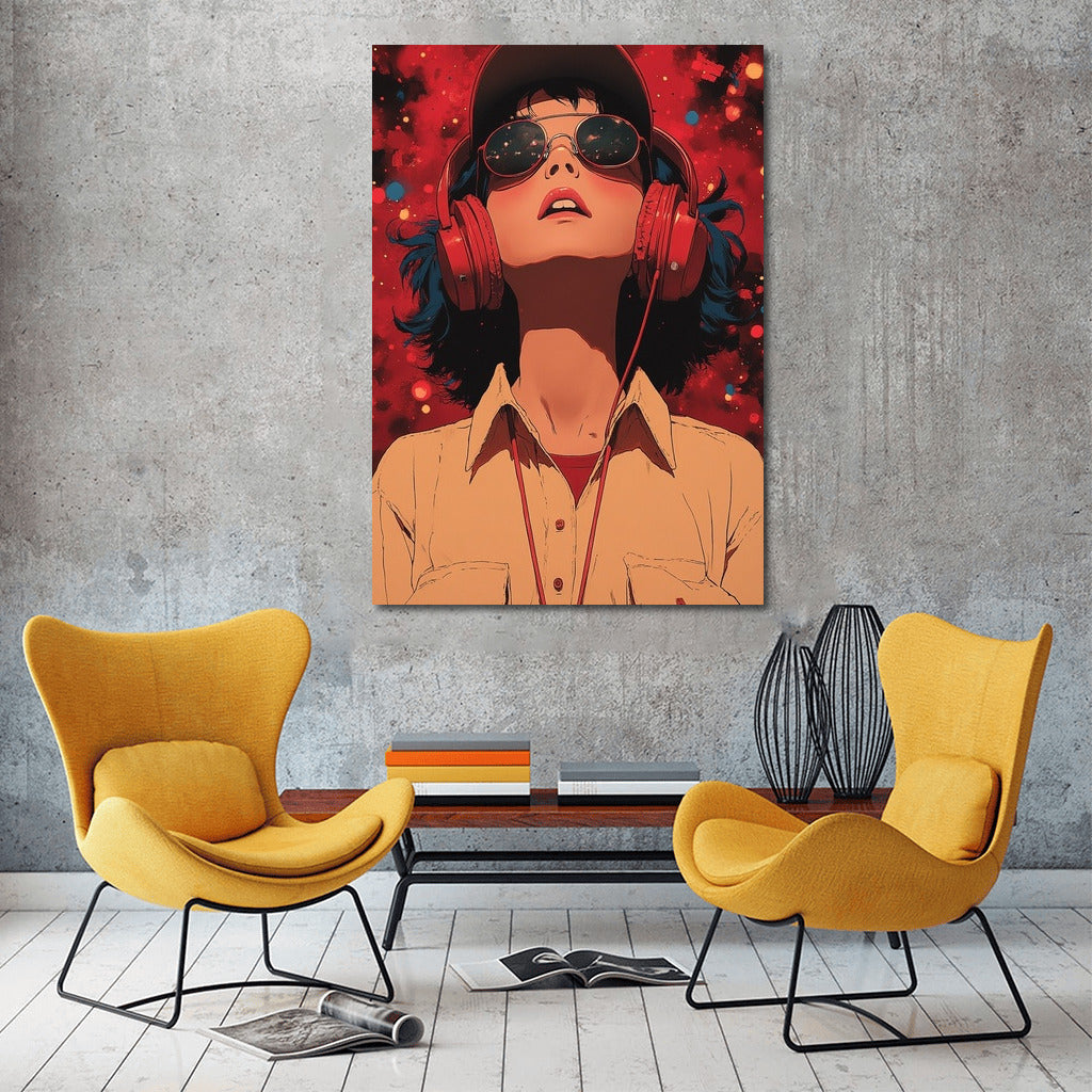 A girl in headphones immerses herself in the world of music. This poster will liven up any space, adding a touch of style and freedom! See more from the collection: Mixed Wall Art