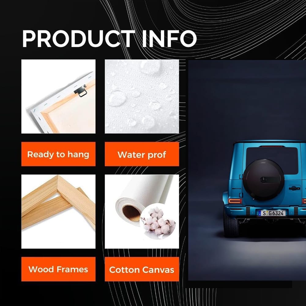 This poster is a blast for car lovers! The painting features the legendary Mercedes-AMG G 63, standing on a blue background like the king of the parking lot. This wall art is a chic trophy for those who appreciate power and style in every line. Hang it on your wall and enjoy! See more from the collection: Mercedes AMG Art