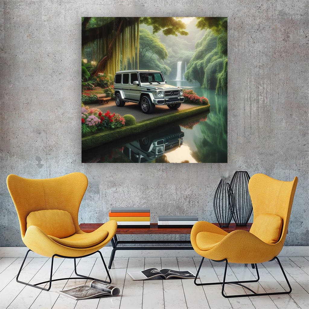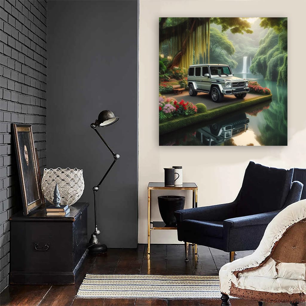 Check this painting out, bro! The G-Wagon on the poster is a blast. Wall art for true car fans. Every time you look at this masterpiece, you imagine this beast racing through the mud. Want a cool vibe in your room? This is it! See more from the collection: Mercedes Art
