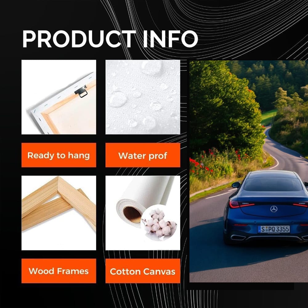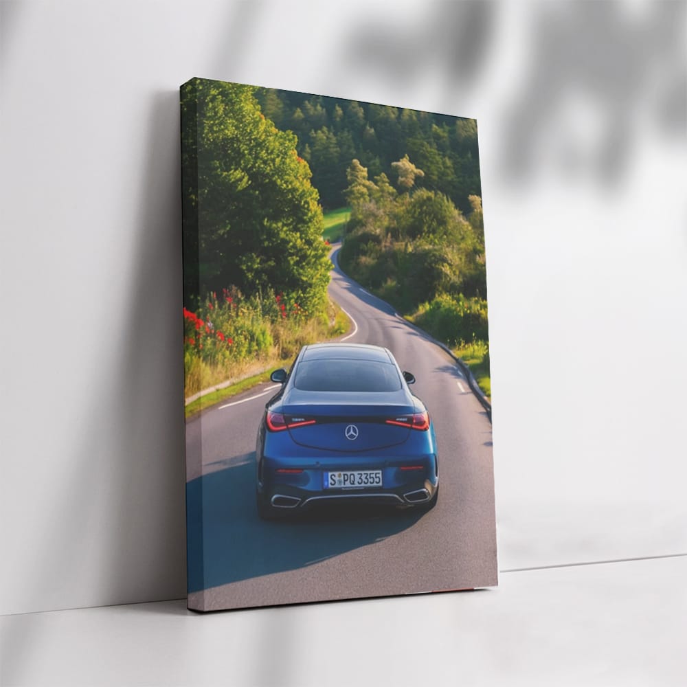 This poster is like an adrenaline shot. It shows a Mercedes, like a wild animal, cutting through nature. This wall art is not for the weak. The painting brings the spirit of speed and freedom into the house, perfectly complementing the style of a true car fan. See more from the collection: Mercedes Art