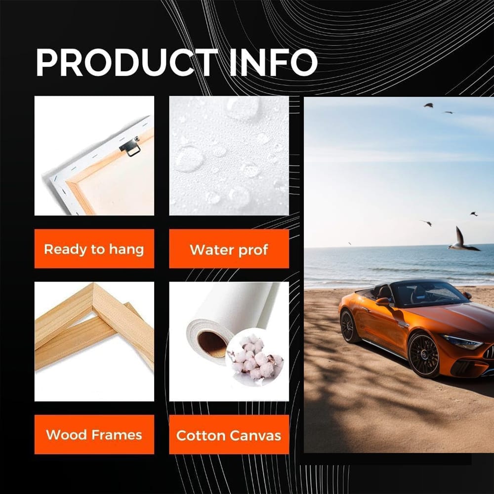 Mercedes SL63 on the beach is not just a painting, it is a real poster for true connoisseurs. Wall art, where every detail of the car screams about speed and style. This masterpiece on the wall will let everyone know that you are the boss of the roads and the master of pleasure. See more from the collection: Mercedes Art