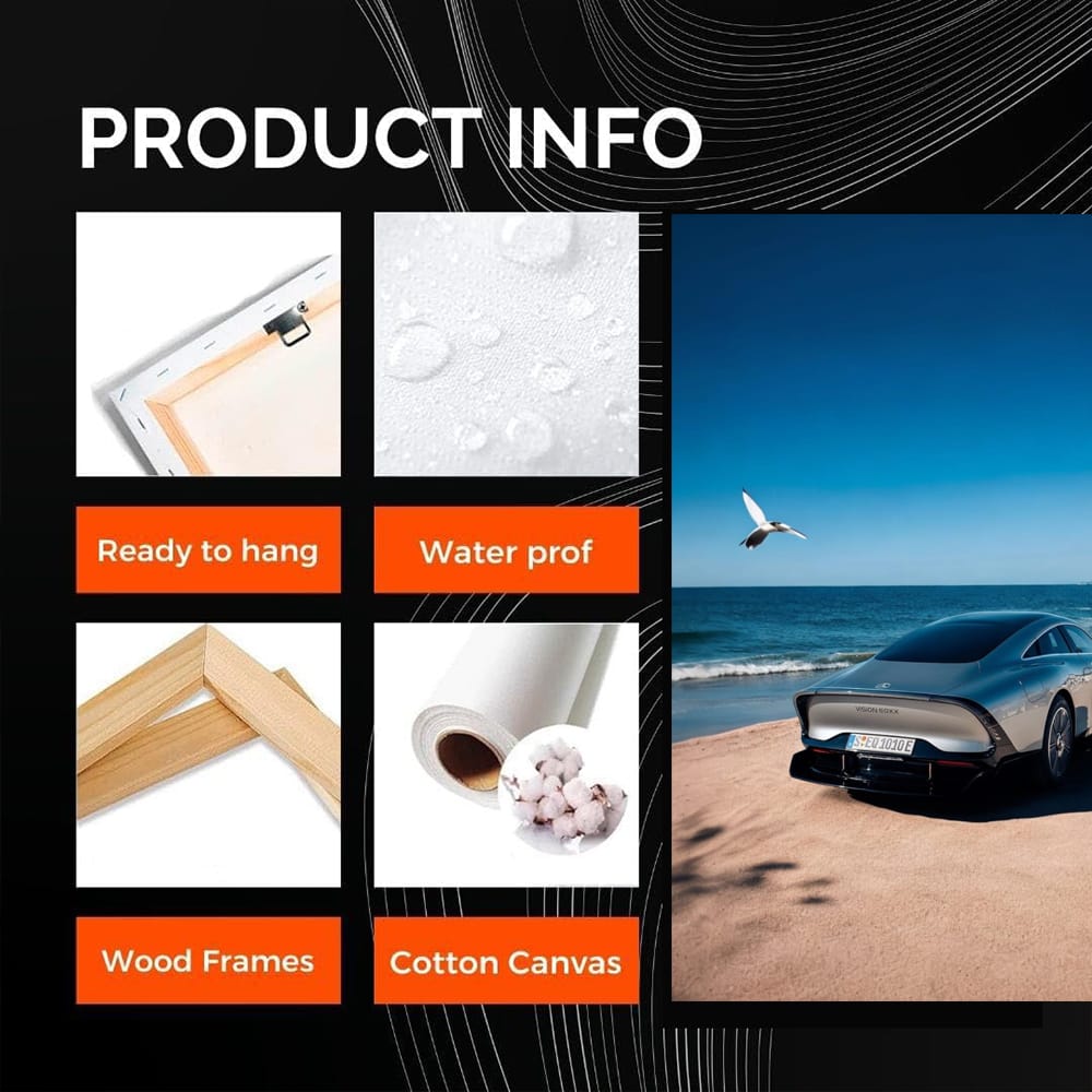 This poster is pure joy for car fans. A painting of the Mercedes Vision EQXX, like on the wall of a street racer. Wall art that screams speed and style. If you want your lair to breathe adrenaline - this is your choice, brother! See more from the collection: Mercedes Art