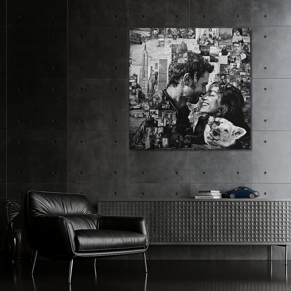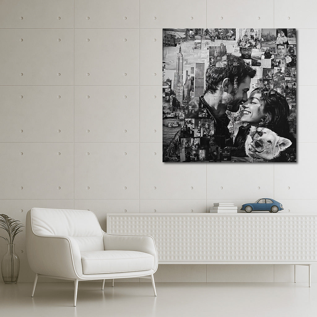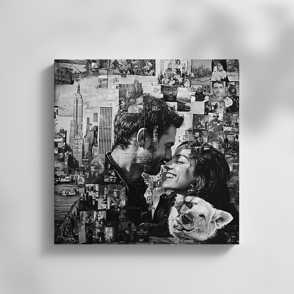 Collage of emotions and memories: a poster where souls unite in the city of dreams. Perfect wall art for romantics! See more from the collection: Black and White Art