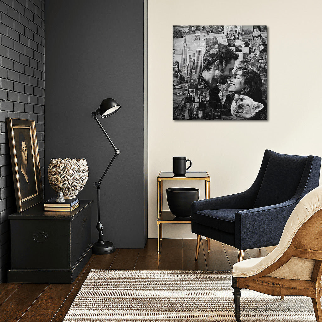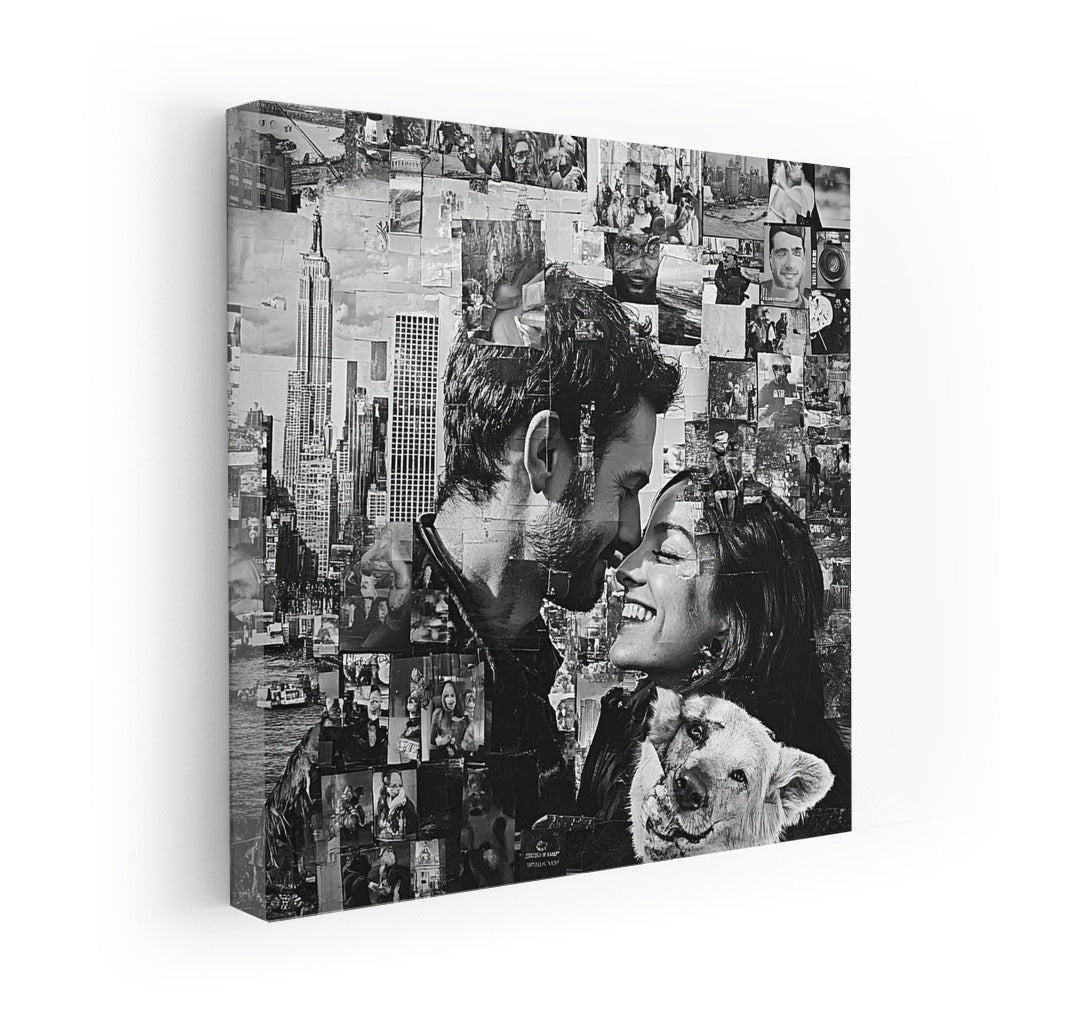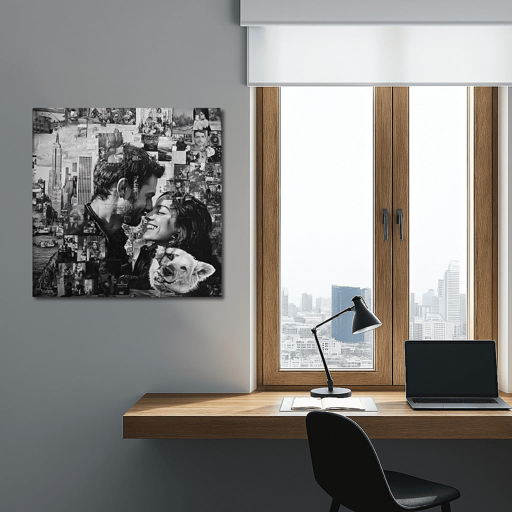Collage of emotions and memories: a poster where souls unite in the city of dreams. Perfect wall art for romantics! See more from the collection: Black and White Art