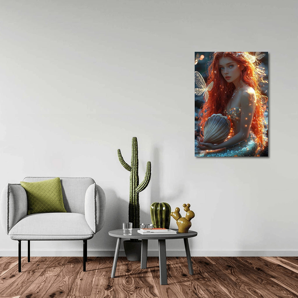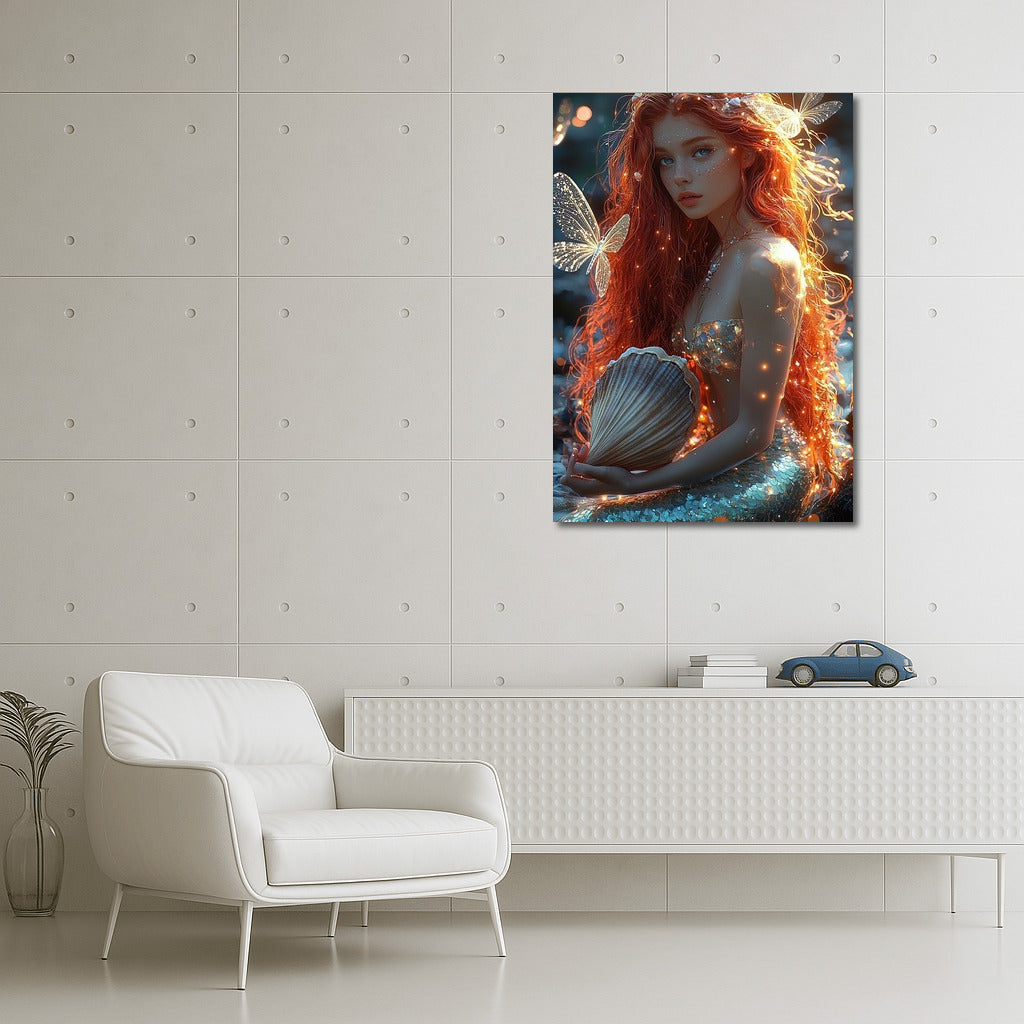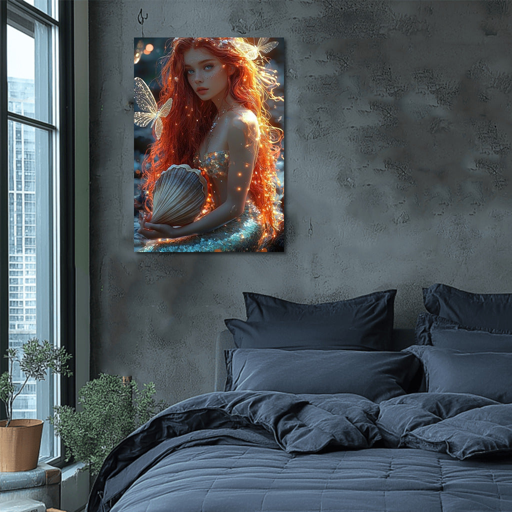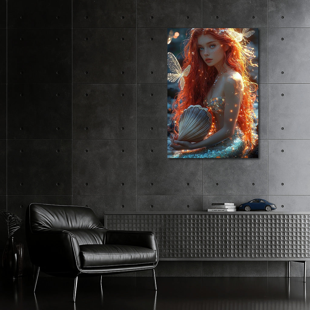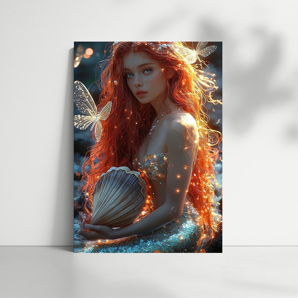 Shimmering mermaid and fairy fireflies painting. Poster for cozy magic! Wall art with fantasy light. See more from the collection: Mythology & Legends Art