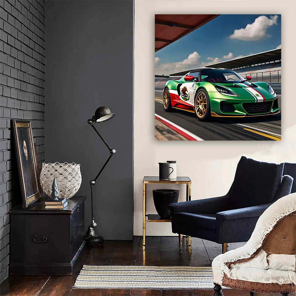Mexican Flag-Adorned Green Lotus Exige - Speed and Style Wall Art