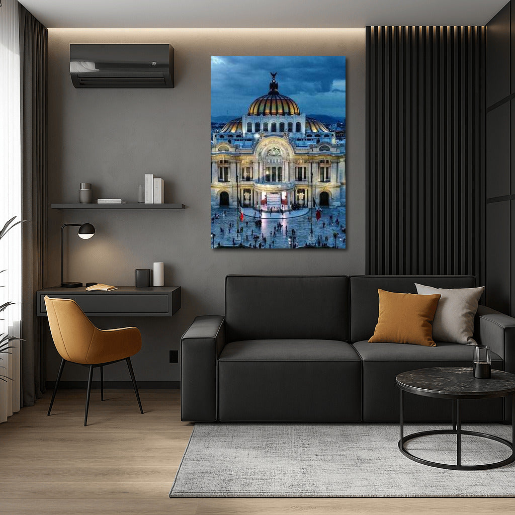 Harmony of light and architecture: poster with exquisite view of Mexico's Palace of Arts. Wall art in the heart of Mexico City. See more from the collection: Country Art
