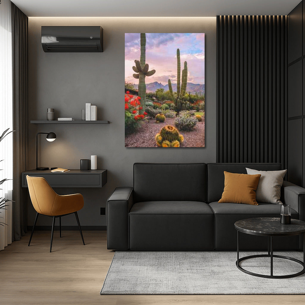 Immerse yourself in the Mexican countryside with this poster: majestic cacti, mountains and sunset sky create an atmosphere of magic. See more from the collection: Country Art