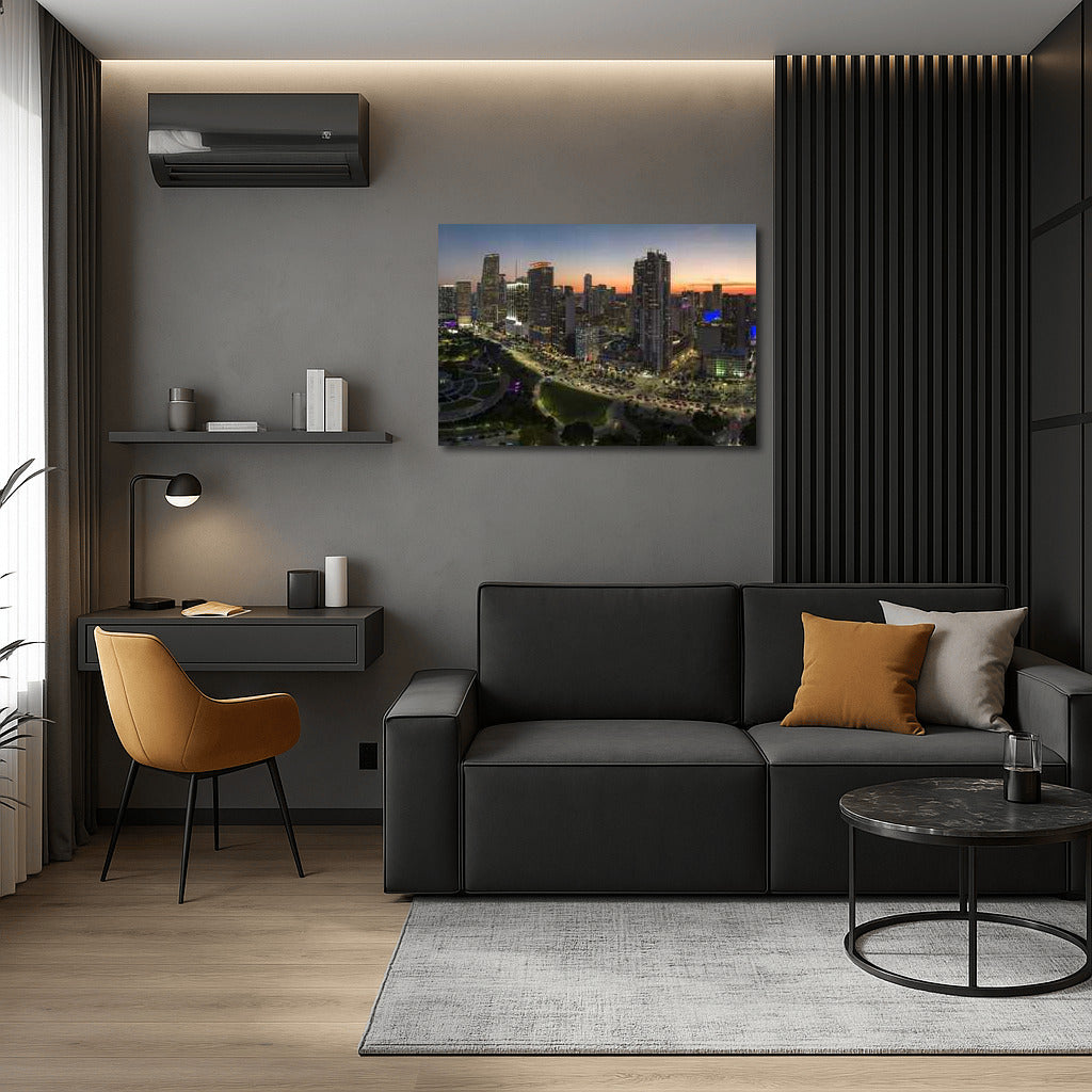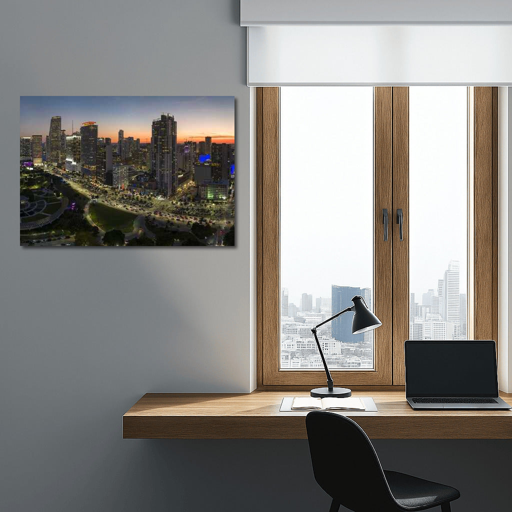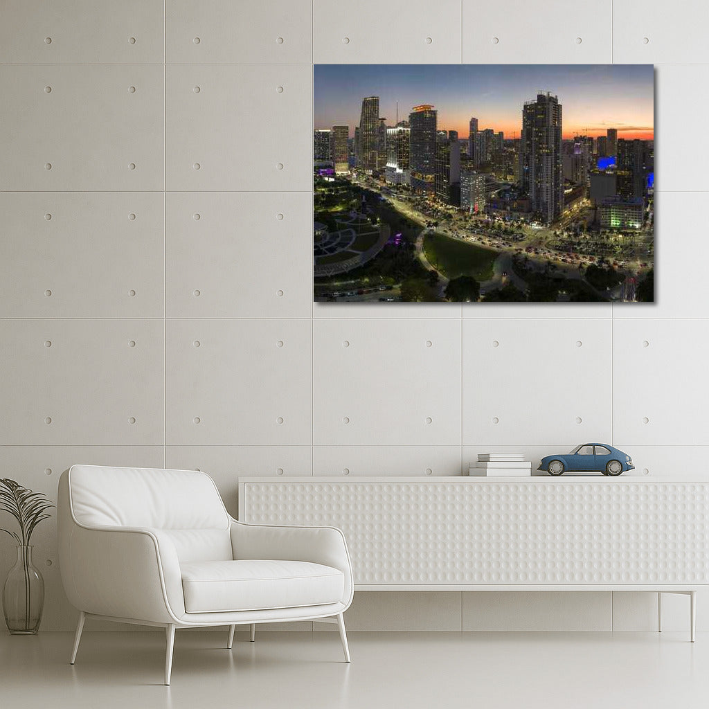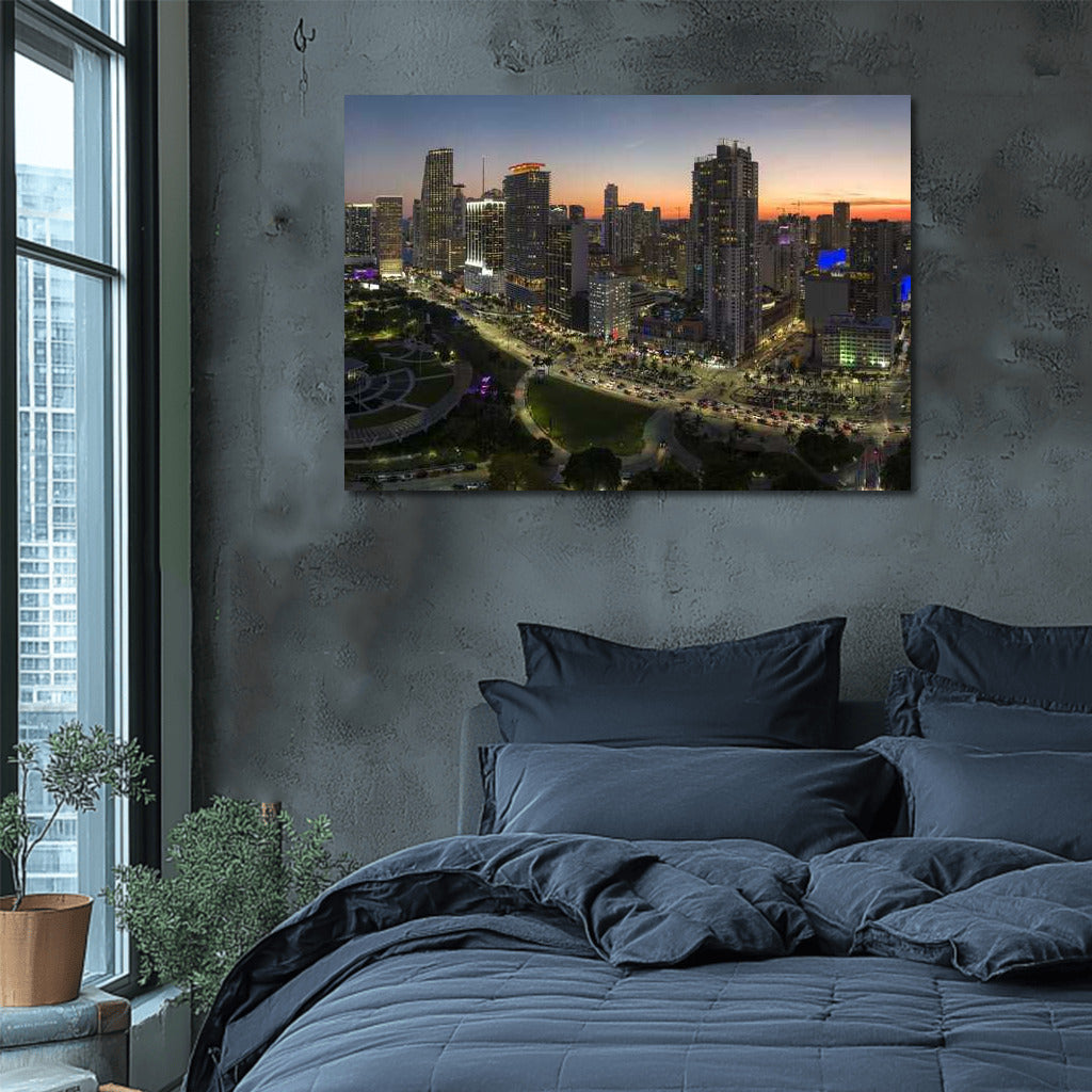 Bright lights and energetic rhythm of Miami night in this painting will enliven your interior. Wall art with a view that will conquer. See more from the collection: Cityscapes & Skylines Art