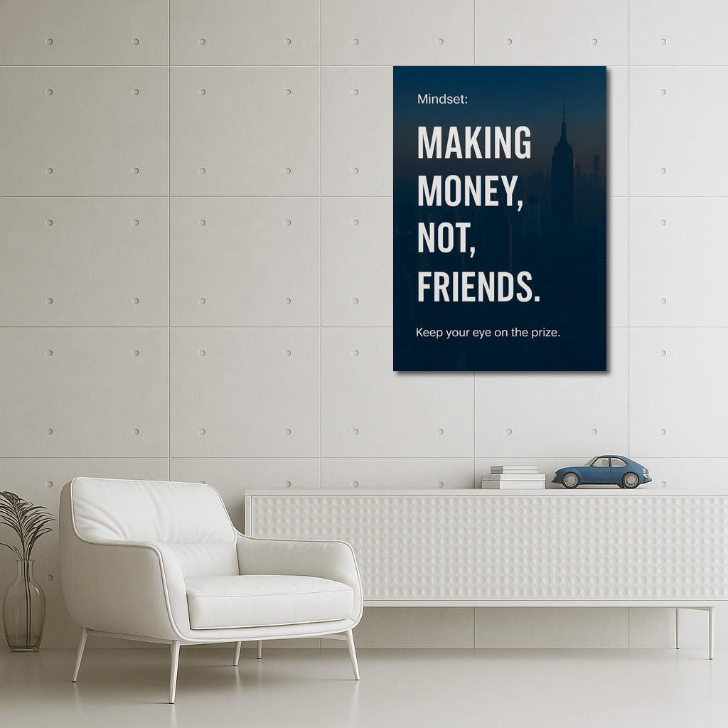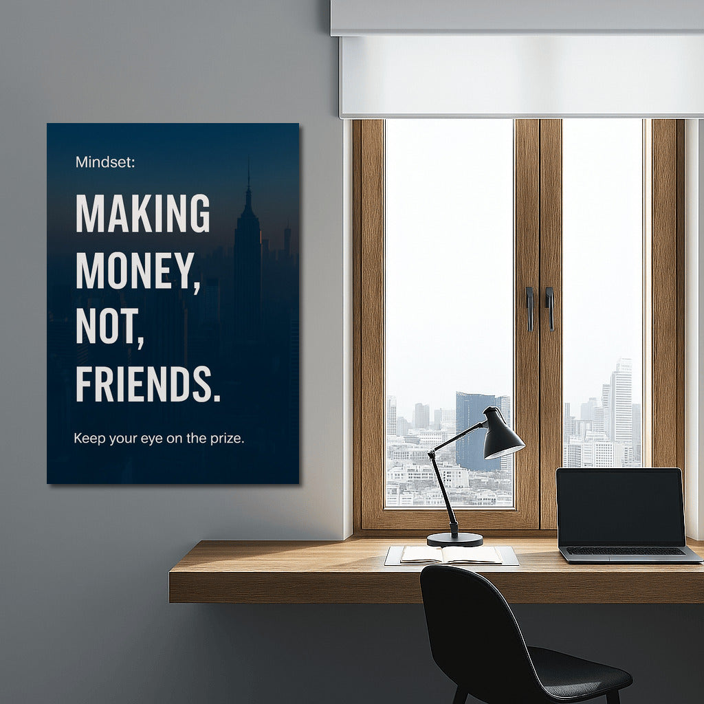 Mindset: Making money, not friends. poster - a reminder to focus on success and goals. Add motivation to your wall. See more from the collection: Dreams & Vision Quotes Art