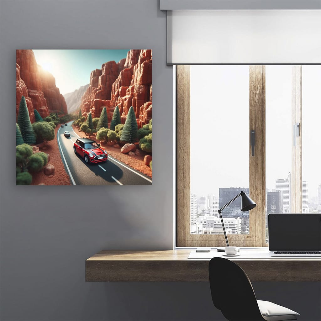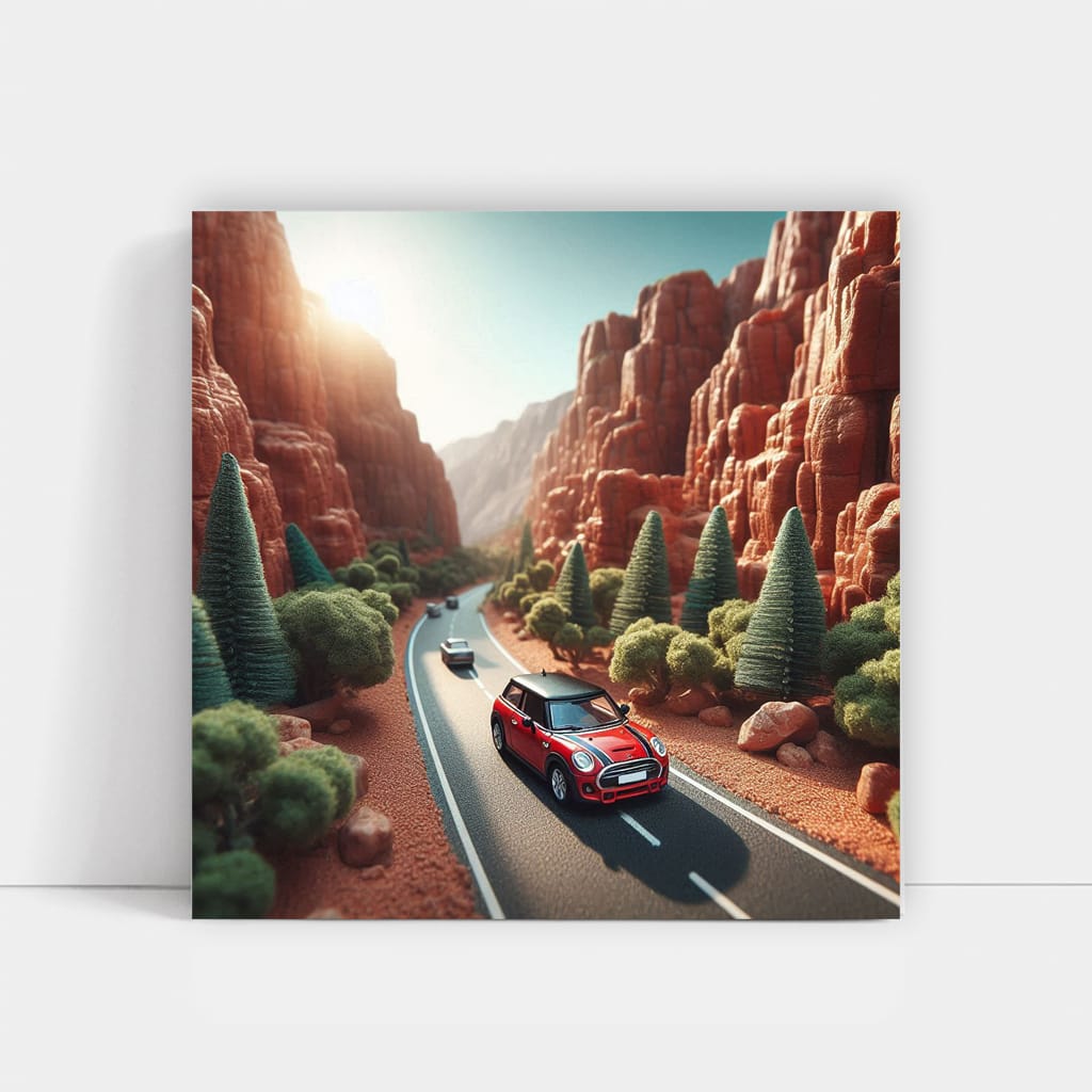 Bro, painting this: a mini-clubman tearing through a canyon, immortalized on a poster. This is not just a painting, this is wall art for true car fans. The black and white color scheme emphasizes style and power. Hang it on your wall, and every time you look at it, the need for speed awakens. See more from the collection: MINI Clubman Art