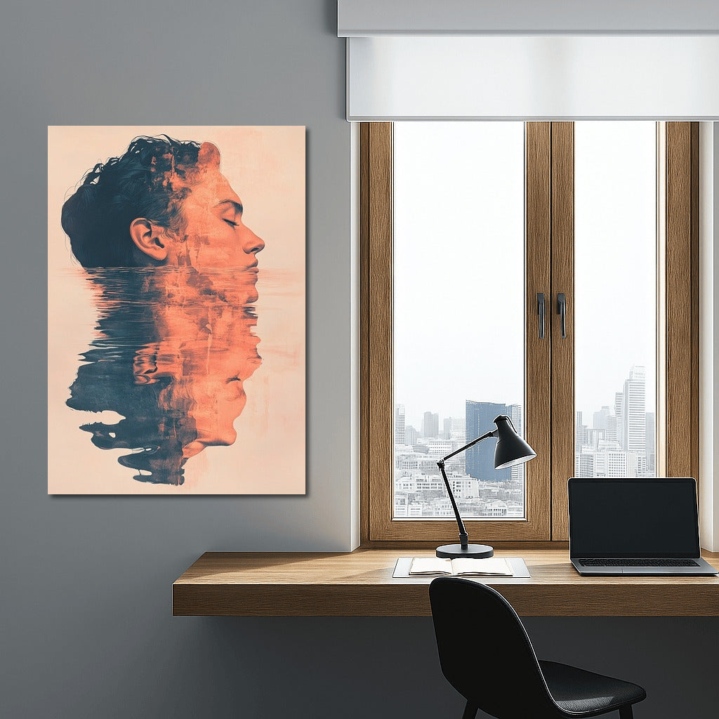 Dive into a dream world with this mysterious painting. Wall art where reflection opens new horizons. See more from the collection: Mixed Wall Art