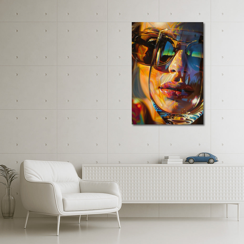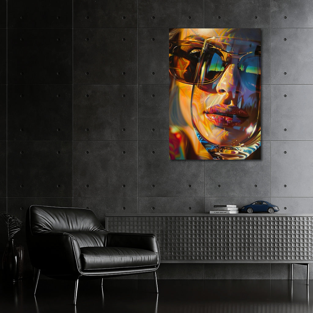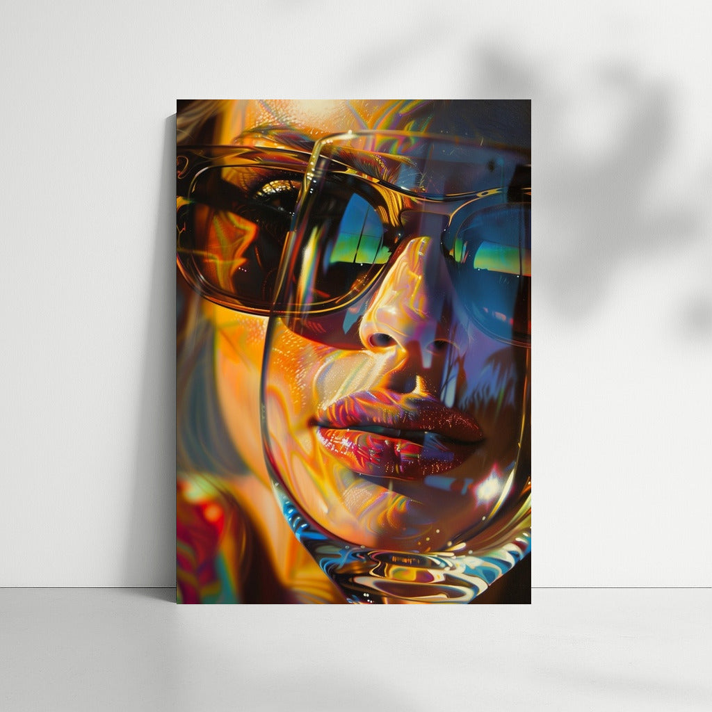 A vibrant poster with an abstract reflection in glasses. Wall art that will add style and mystery to your interior. See more from the collection: Mixed Wall Art