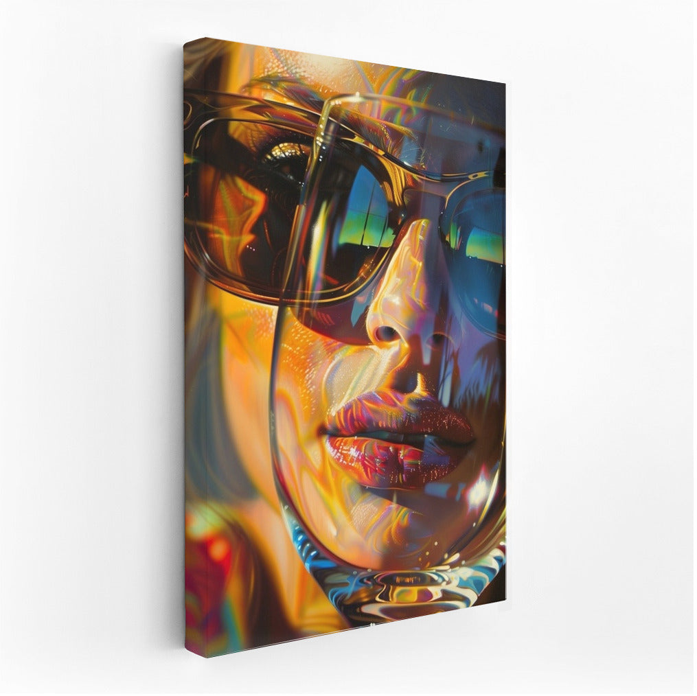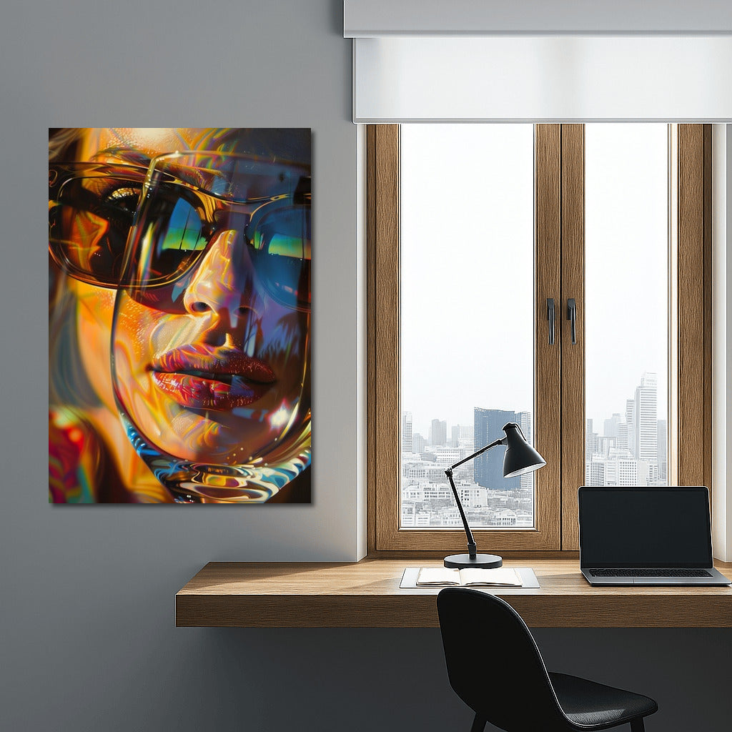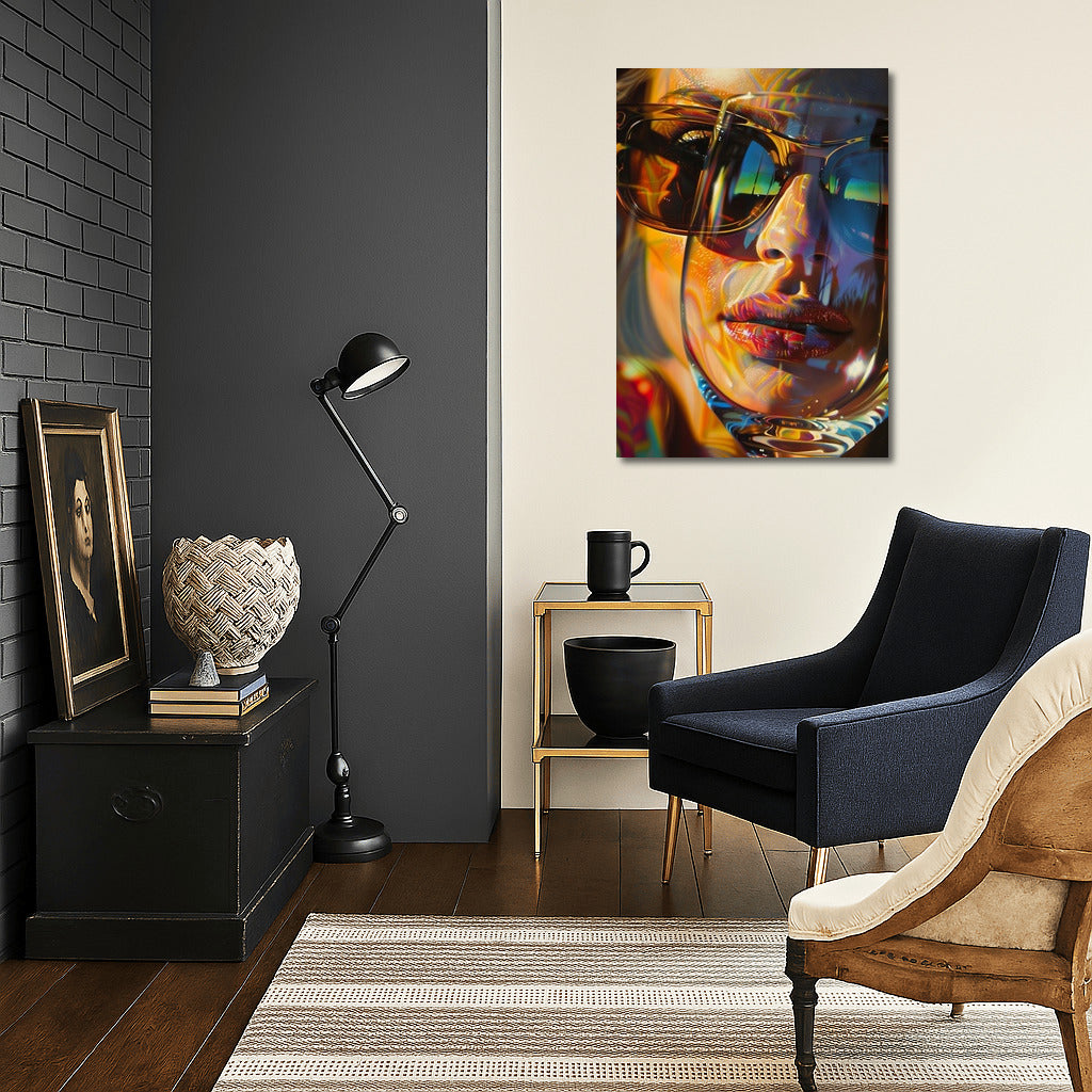 A vibrant poster with an abstract reflection in glasses. Wall art that will add style and mystery to your interior. See more from the collection: Mixed Wall Art