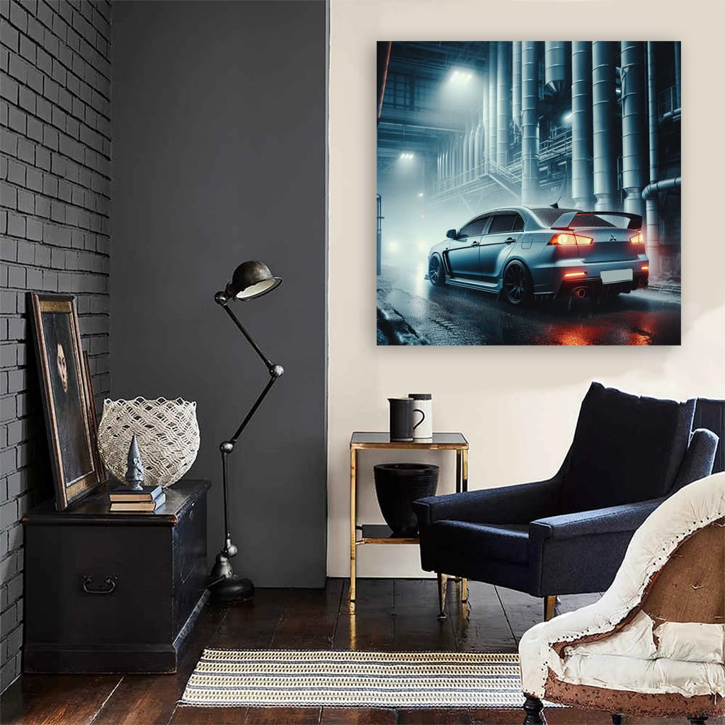 There is a painting of the Evo hanging on the wall, and it is pure magic for any car enthusiast. This poster is like adrenaline in a frame, screaming about speed and power. Wall art for those who breathe gasoline and dream of the track. See more from the collection: Mitsubishi Art