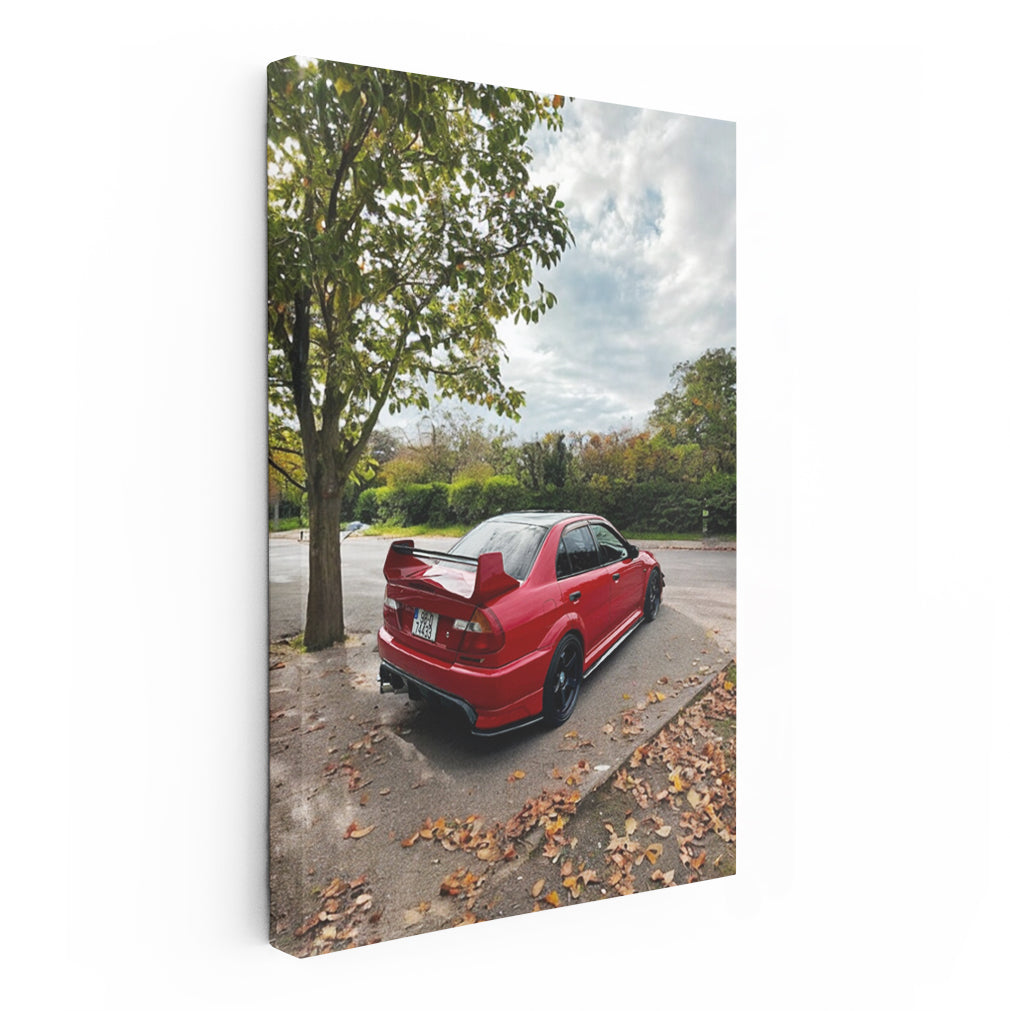 Mitsubishi Lancer in Red at Park - Sporty and Dynamic Wall Art