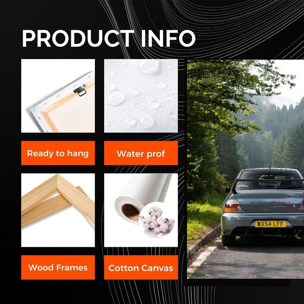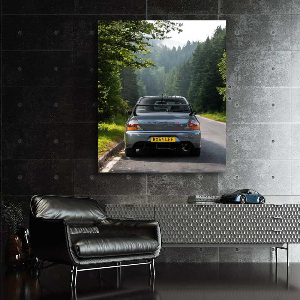 This poster-painting is a real masterpiece of wall art for car lovers. Mitsubishi Lancer, like an animal in the wild, fits into the wild nature. This image highlights the aggression and power of the car. Hang it on the wall to add drive and speed to your den. See more from the collection: Mitsubishi Art