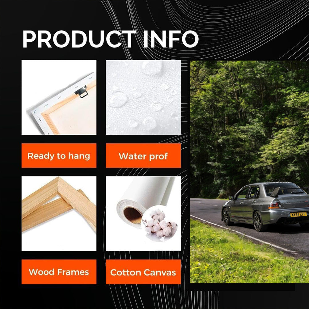 This poster is not just a painting, but a real wall art for true fans! Mitsubishi Lancer surrounded by nature looks like a formidable beast on the hunt. This image says: "I am here to win!" The perfect decoration for the garage or man cave. See more from the collection: Mitsubishi Art