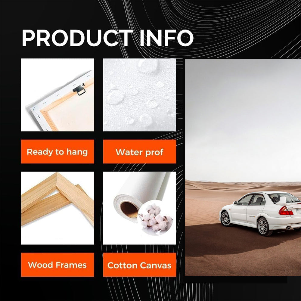 Hey bro, check out this wall art! A poster of a Mitsubishi Lancer tearing up the desert. This painting is pure adrenaline on the wall. For all those who live for the road and speed. Just fire! See more from the collection: Mitsubishi Art