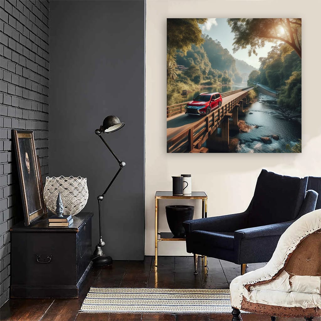 This poster is pure adrenaline for true car lovers! Mitsubishi Outlander on the bridge is a painting that every street racer dreams of. Wall art that blows the mind and adds audacity to any room. A must-have for a speed fan! See more from the collection: Mitsubishi Art