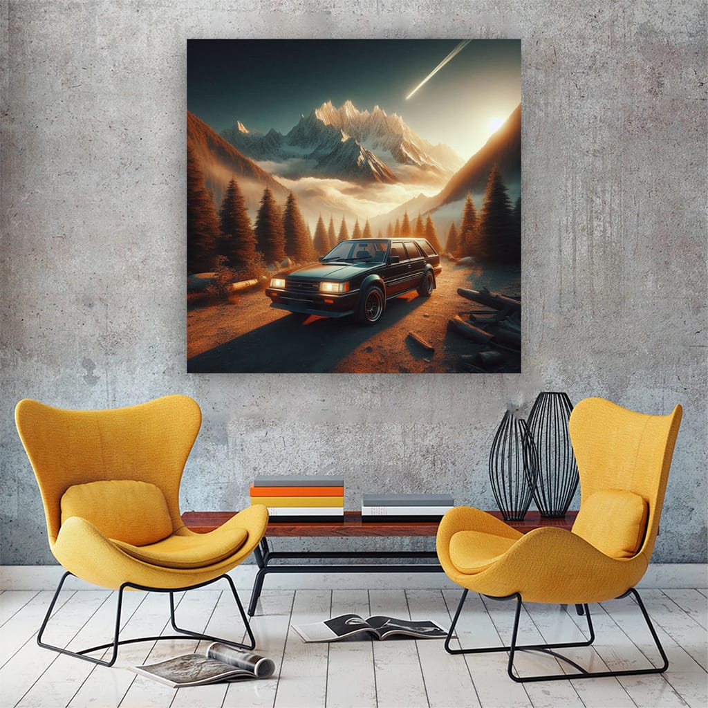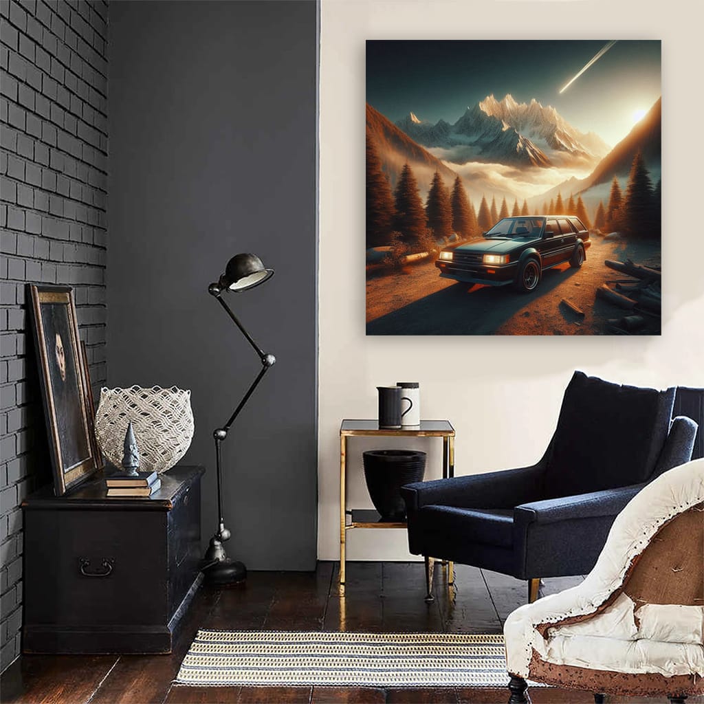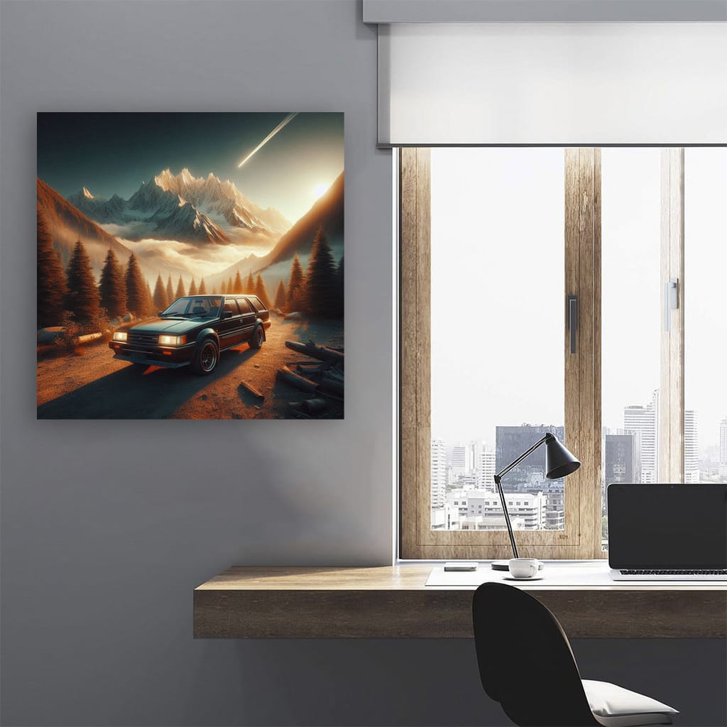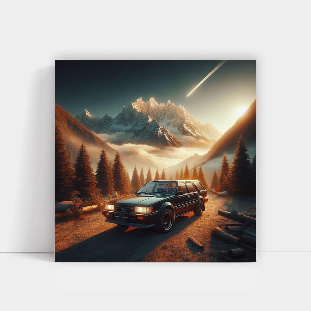 "Dude, this poster is the bomb! Old Mitsubishi, nature in the background, all in 2D style. This is wall art for real car fans. The painting seems to be from another era, but with such a daring attitude that you can admire it forever." See more from the collection: Mitsubishi Art